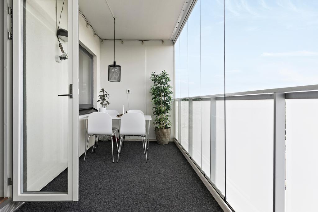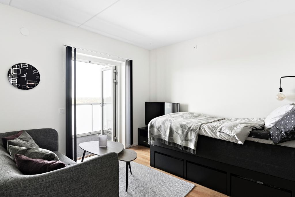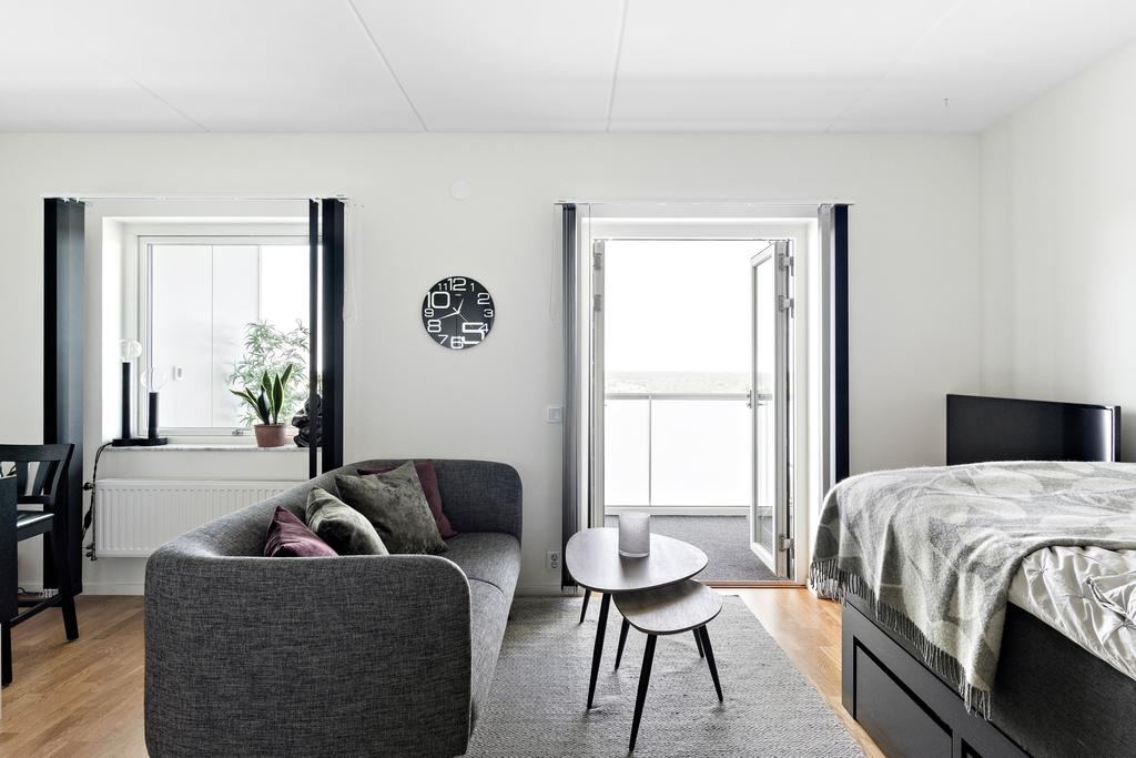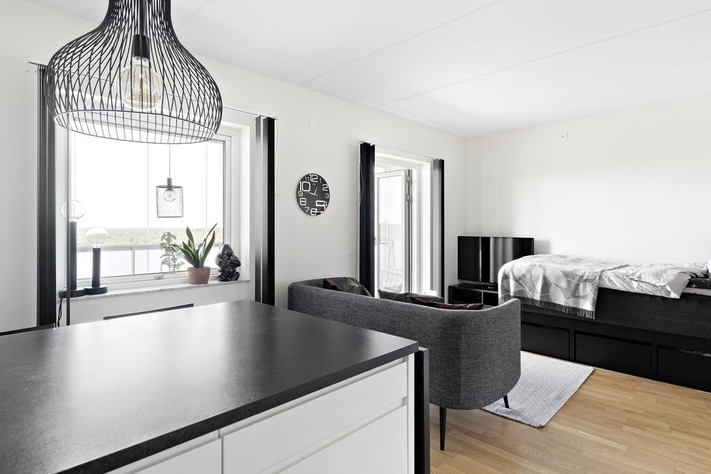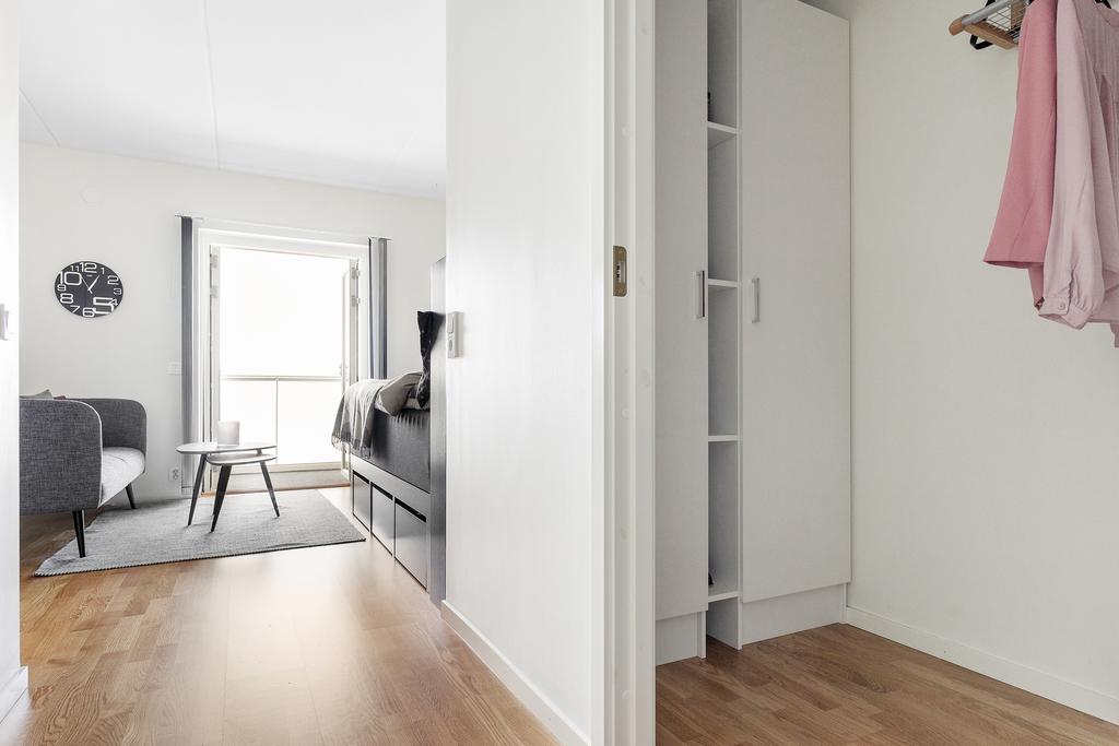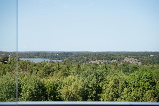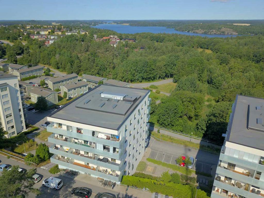 Stilren etta med fantastisk och stor inglasad balkong i söderläge och sjöutsikt! Högst upp i huset!