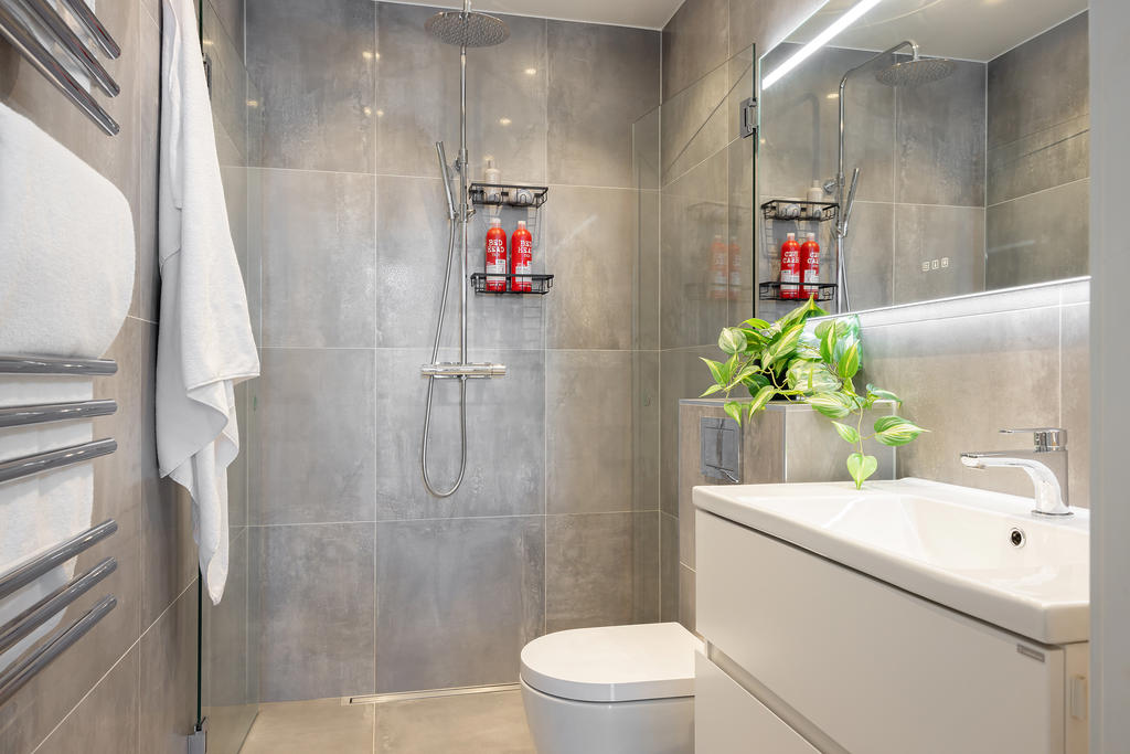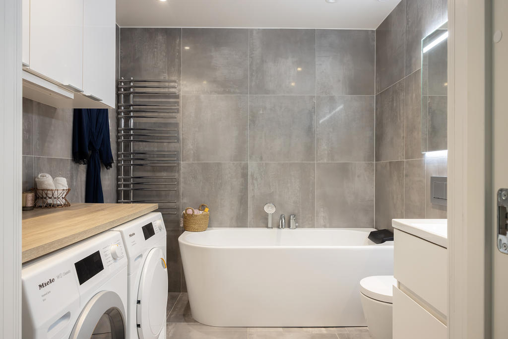 Bostaden erbjuder två fint renoverade badrum, ett med badkar och det andra med dusch. Fullt utrustat med tvättmaskin och torktumlare.