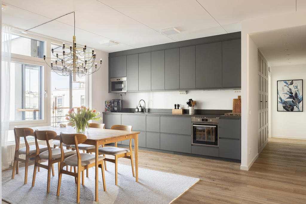 Köket är smakfullt renoverat med hög standard och bekvämlighet, riktigt bra förvaringsmöjligheter och generösa ytor att laga mat på. Ett fantastiskt kök som erbjuder möjlighet till trevliga middagsbjudningar.