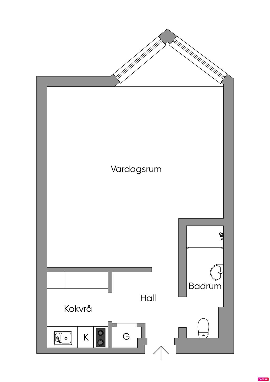 Välplanerad och ljus etta i fint skick!