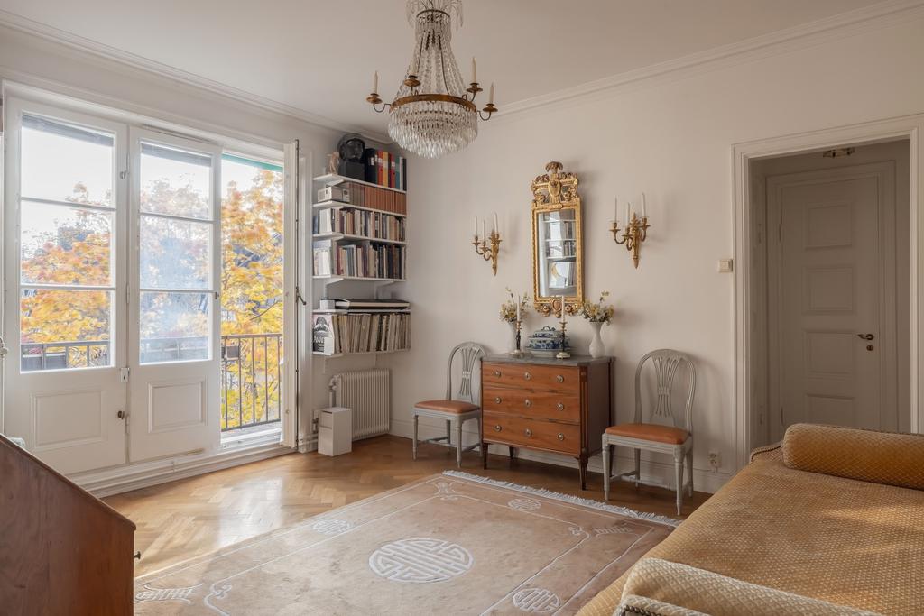 Högt belägen sekelskiftslägenhet med två stora balkonger, optimal planlösning och garage!