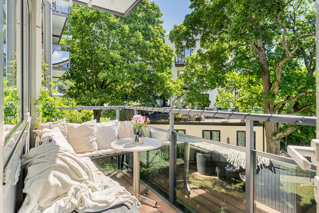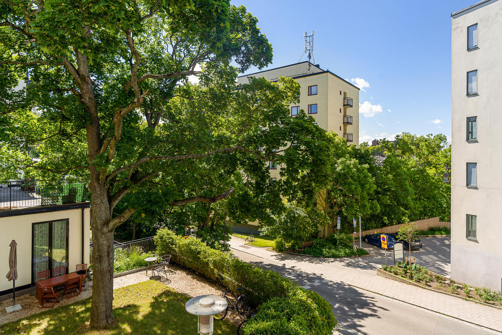 Här bor du i en välplanerad bostad med genomgående hög standard, belägen i ett lugnt område med närhet till grönområden och rekreation. Här är du bara en kort promenad från Tekniska Högskolan (tunnelbana) och tre minuter från närmaste matbutik på Birger Jarlsgatan - ca fem minuters cykelväg till Universitet. Runt hörnet finns även Lill-Jansskogen med dess trivsamma motionsspår och även Hagaparken med fina motions och badmöjligheter. För dig som är bilburen når du enkelt E4:an både norr och söder.