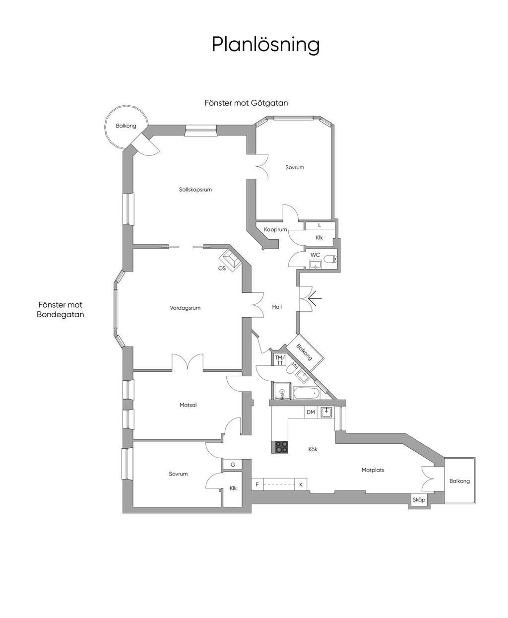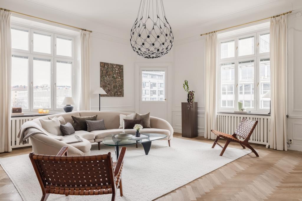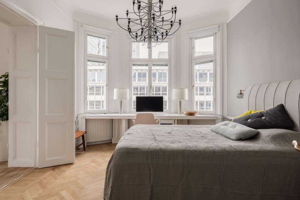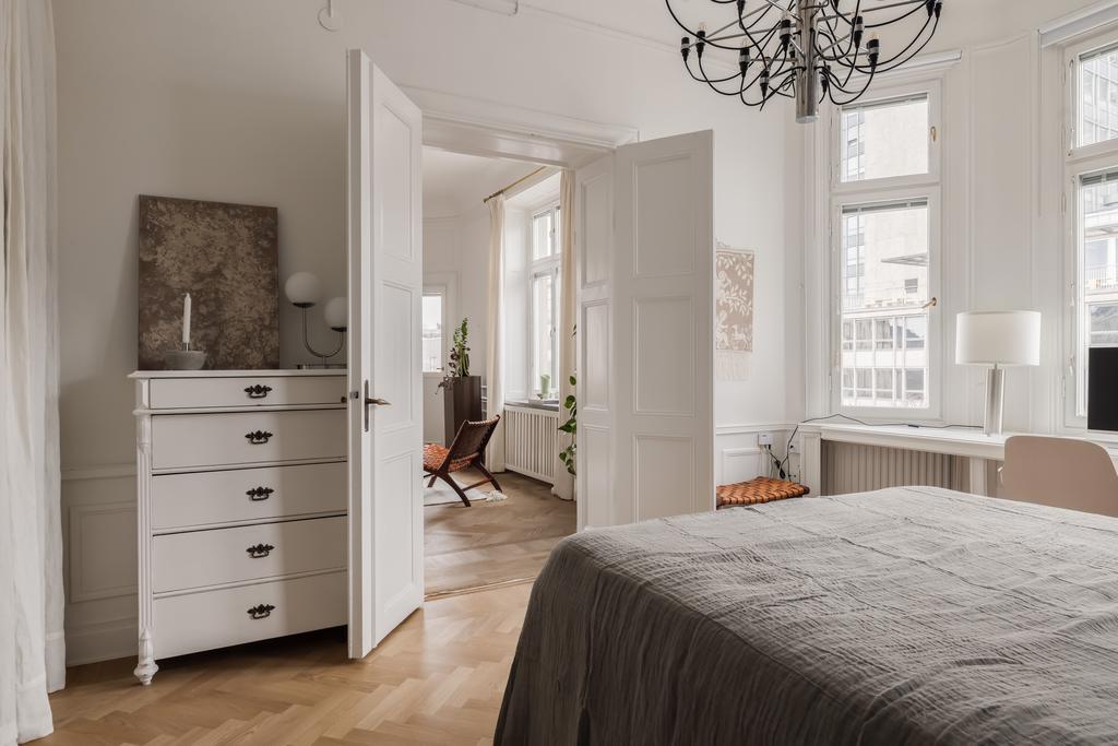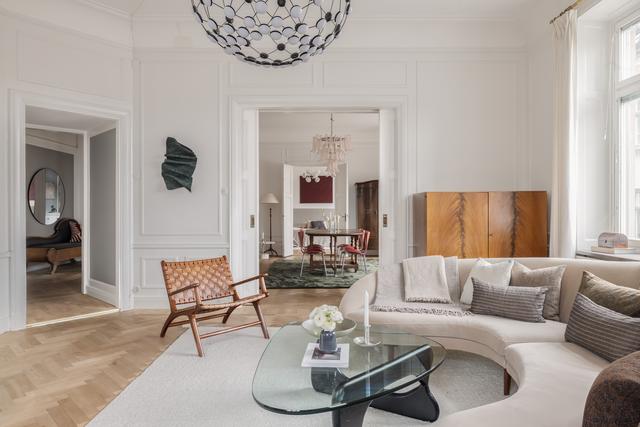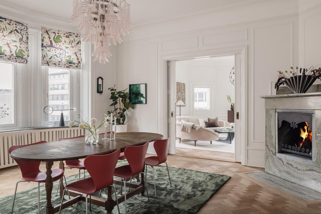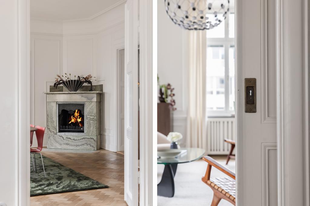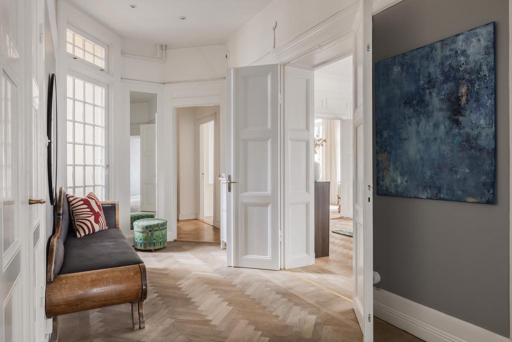 Stor och vacker Jugendvåning med öppen spis och tre balkonger!