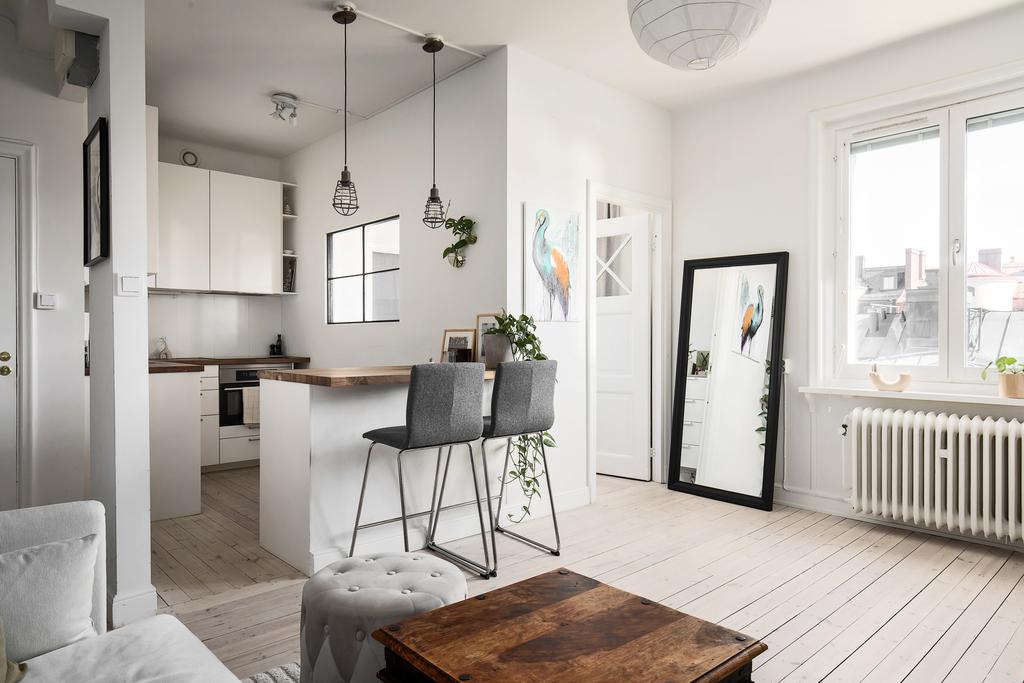 Mycket charmig och smart planerad minitvåa med utsikt över kvarterets takåsar!