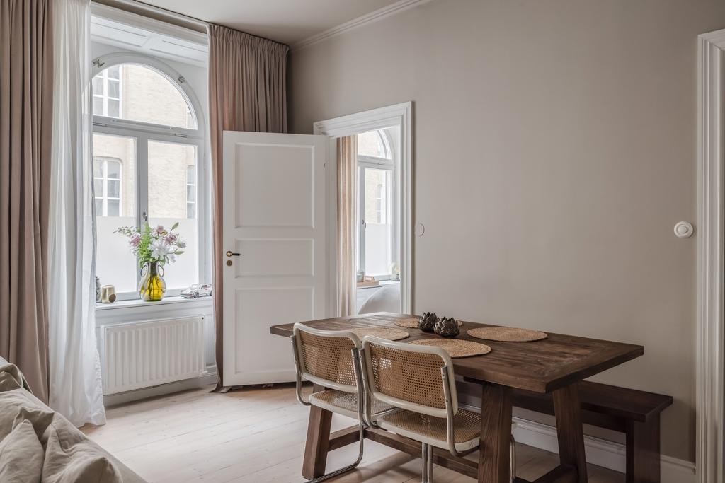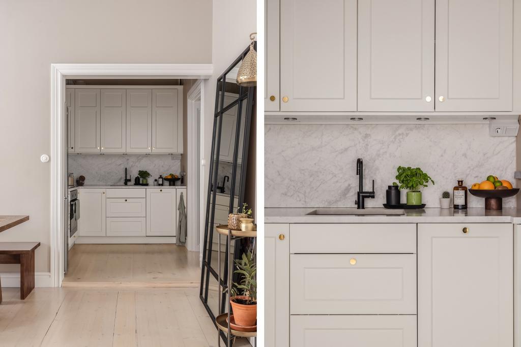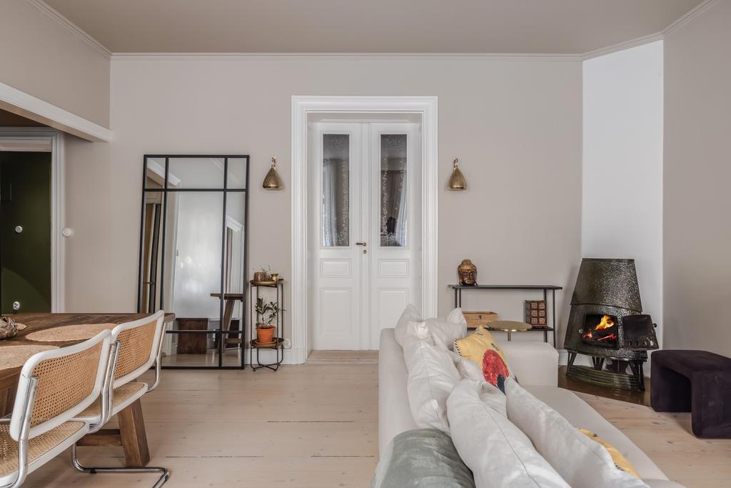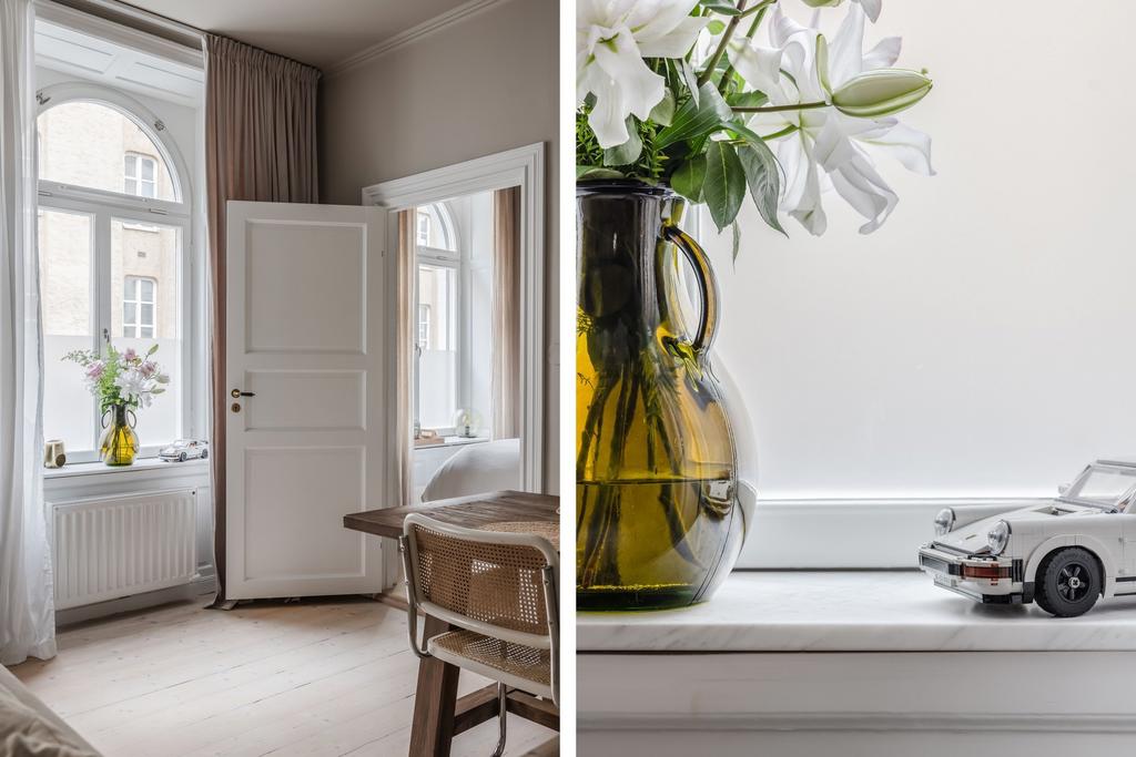 Det vackert spröjsade fönstren i kombination med bostadens väl tilltagna takhöjd om 3,2 M och fria läge skapar tillsammans ett harmoniskt ljus utöver det vanliga. Här finner ni gott om attribut från det sena 1800-talet i form av djupa fönsternischer med tillhörande speglade karmar, speglade dörrar, trägolv genomgående och förhöjda golvsocklar. Detta tillsammans med bostadens genomgående exklusiva känsla och färgsättning skapar ett boende att trivas i under en lång tid framöver.