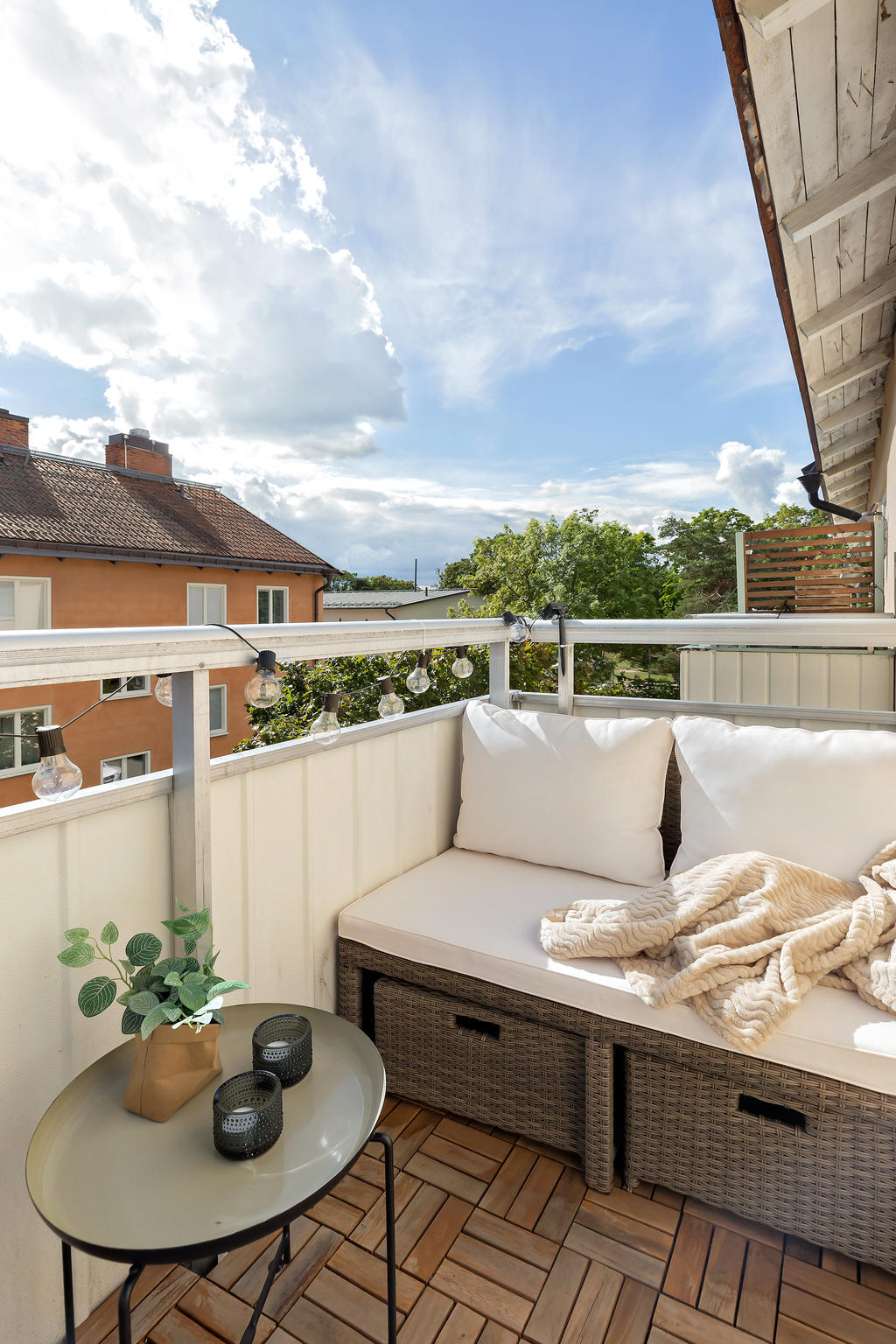 Välplanerad 2:a i toppskick med genomgående planlösning och balkong, centralt men ostört läge.