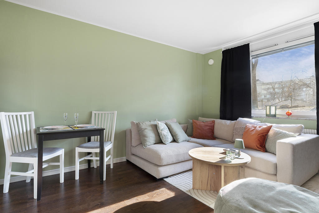 Fräsch 1:a med låg avgift i naturskönt område ca. 13 minuter till stan med tunnelbana!