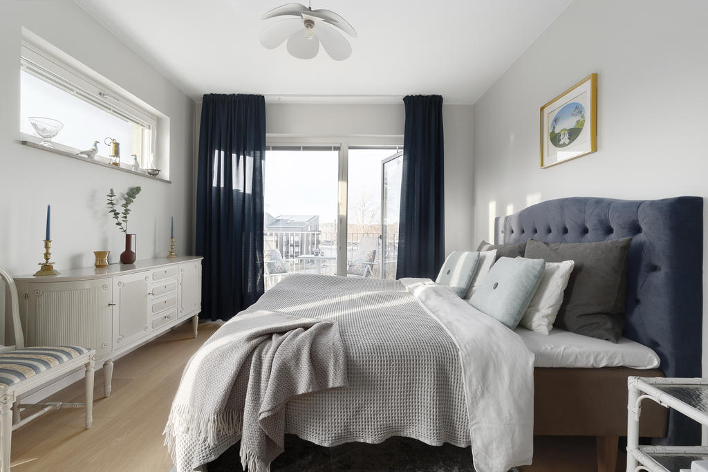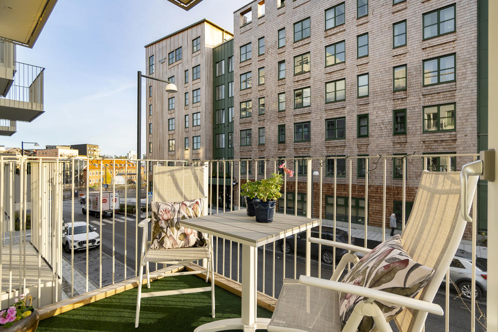 Bostaden utmärker sig med hela sex balkonger – två ordinarie och fyra spanska – som ger en sällsynt känsla av rymd och närvaro. Här fångar du solen från flera håll, med plats för morgonkaffe i österljus och stilla kvällar i skymningen.