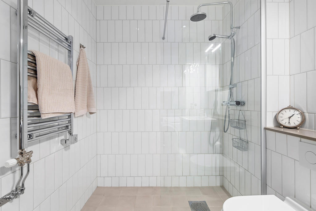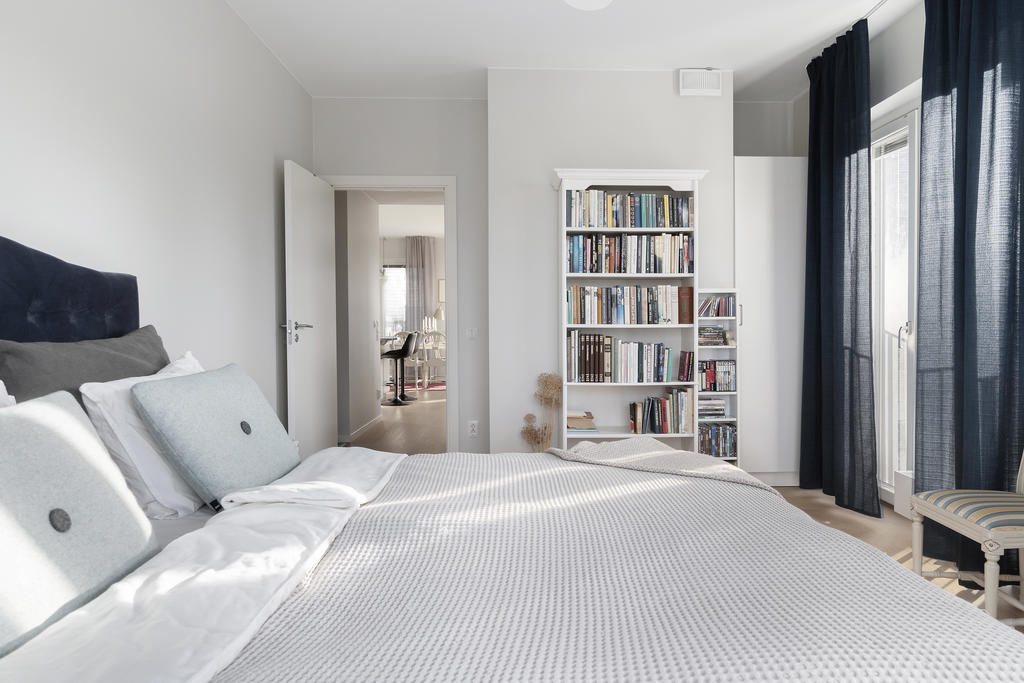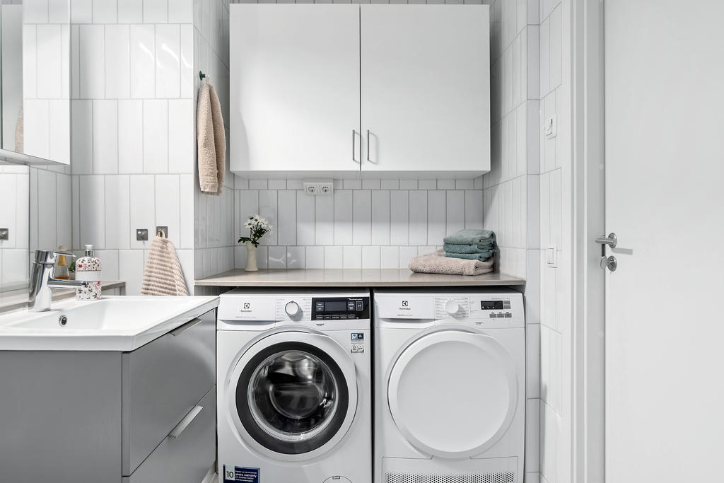 De två sovrummen erbjuder ro och balans – det större med plats för dubbelsäng och rikligt med förvaring, det mindre perfekt som gästrum eller arbetsrum. Det helkaklade badrummet är smakfullt utformat, komplett med tvättmaskin och torktumlare för extra bekvämlighet.