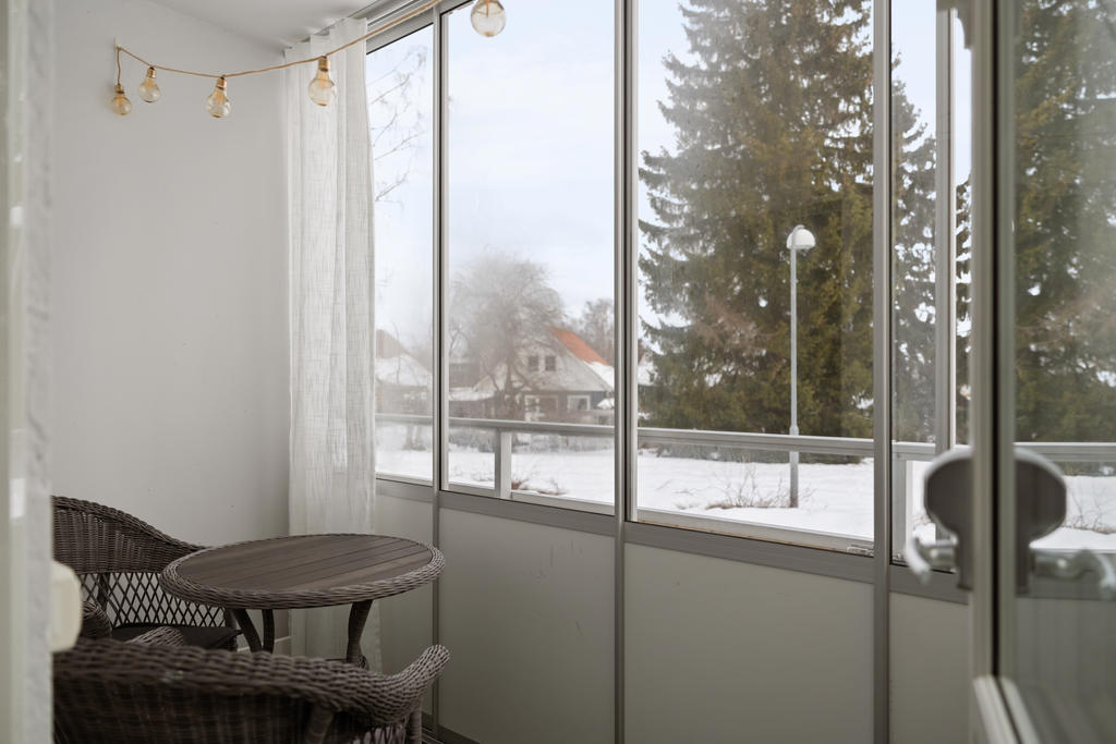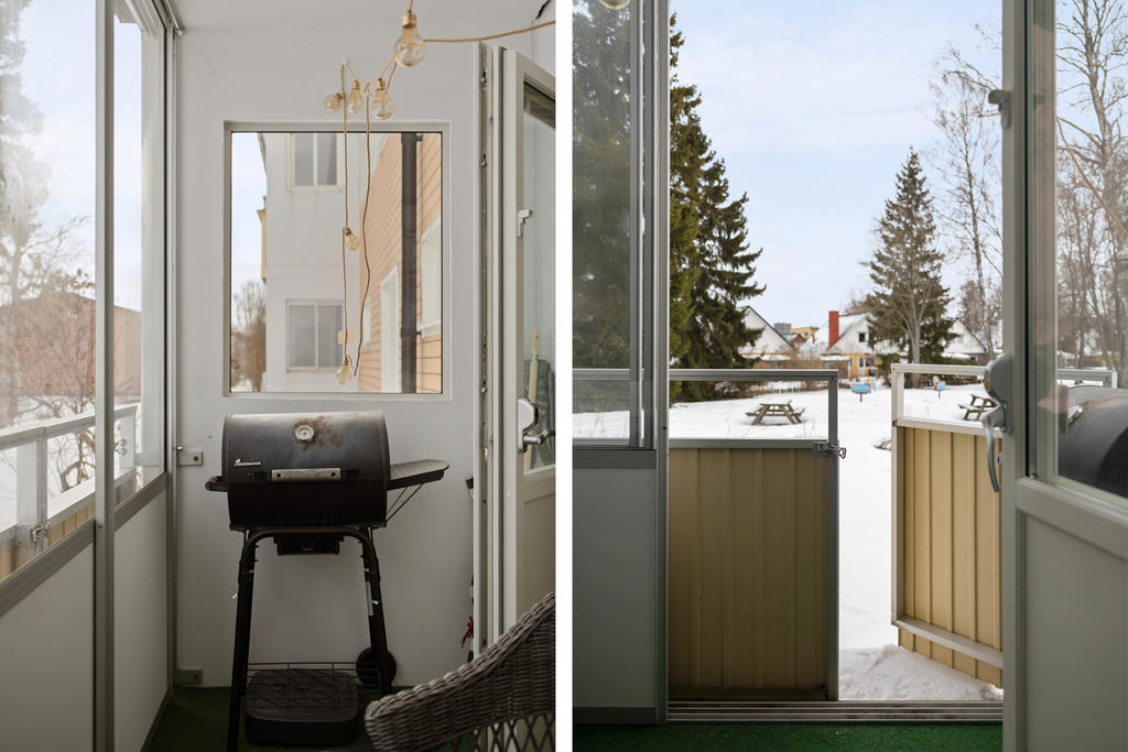Trevlig 2-rok med inglasad balkong och uteplats mot allmänning!