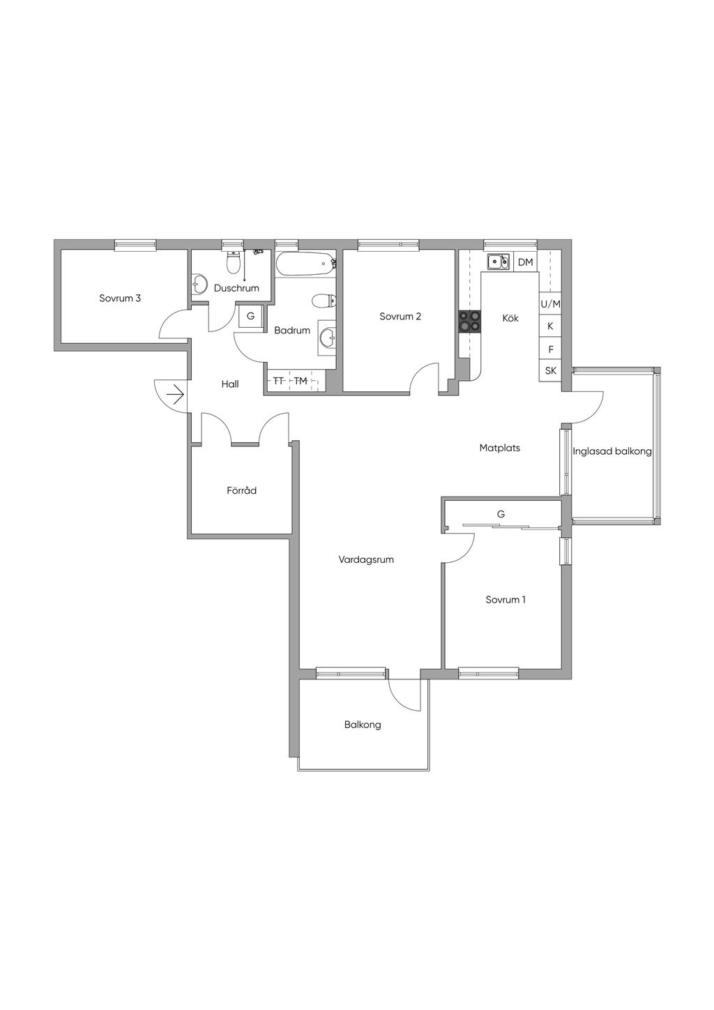Lägenheten rymmer tre bra sovrum. Det största rummet erbjuder gott om förvaring och fönster i två väderstreck som ger ett fint ljus. De andra sovrummen är lättmöblerade och erbjuder plats för både säng, skrivbord och förvaring, vilket gör att de fungerar lika bra som barnrum eller arbetsrum.