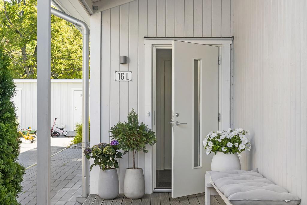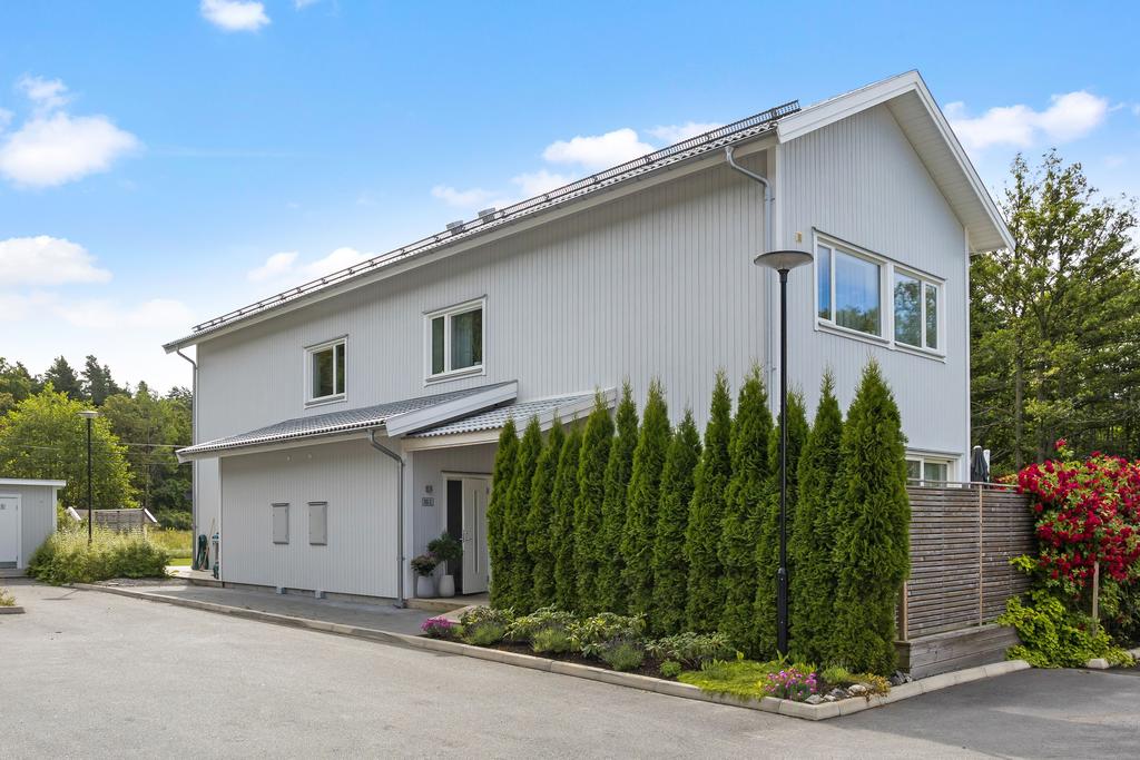 Tillhörande bostaden disponeras även en påkostad och välskött trädgård som omramas av en välskött tujahäck och skapar totalt insynsskydd. Stora och barnvänliga gräsytor, välväxta fruktträd samt ett växthus där du kompletterar dina odlingar med det som kräver lite mer värme. Altanen som leder runt ditt parhus har gott om plats för både utekök och förvaring, här kan dina lounge- och middagsmöbler förvaras under vintern.