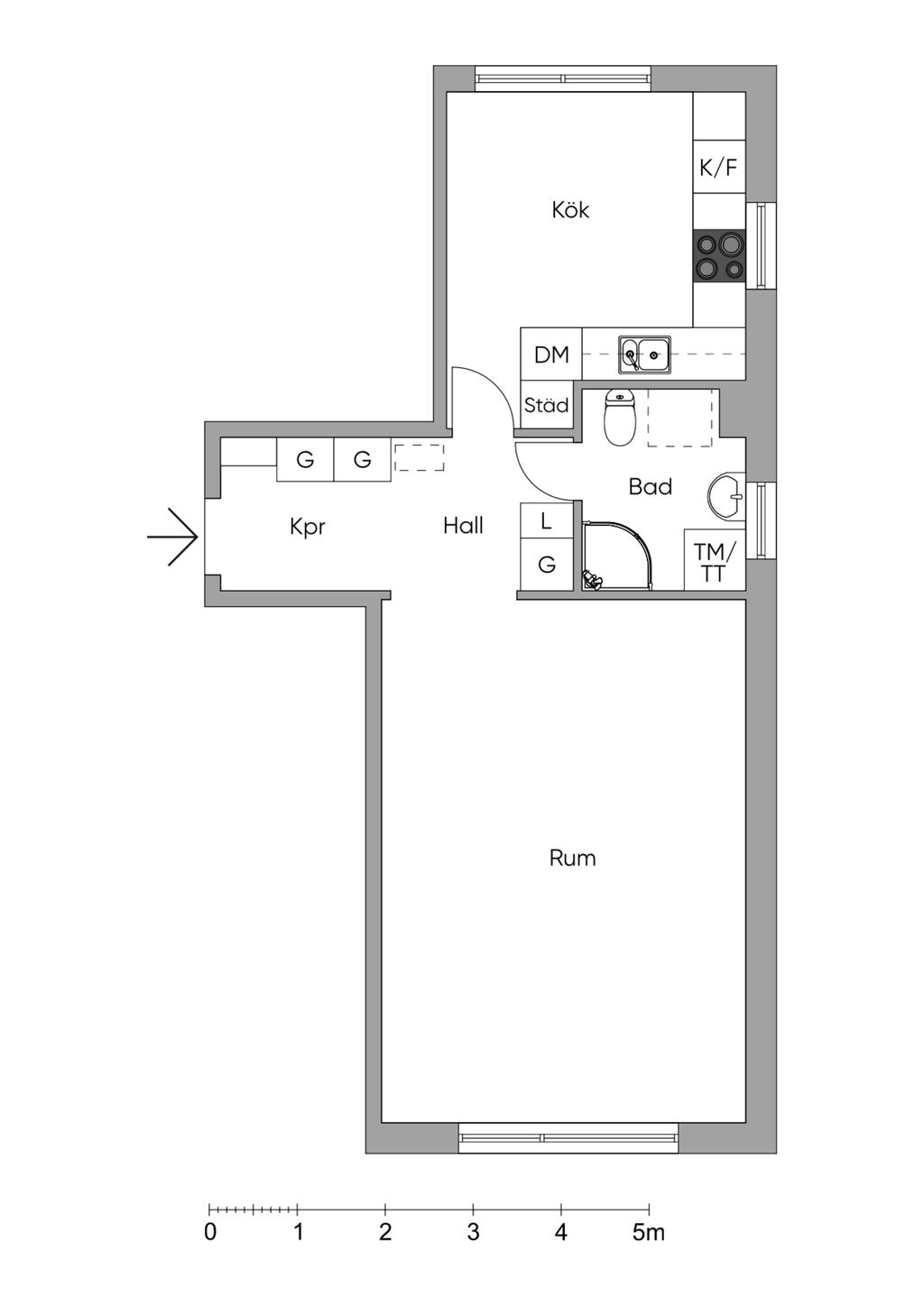 Stor och trivsam etta med separat kök och soligt västerljus – centralt i Vaxholm