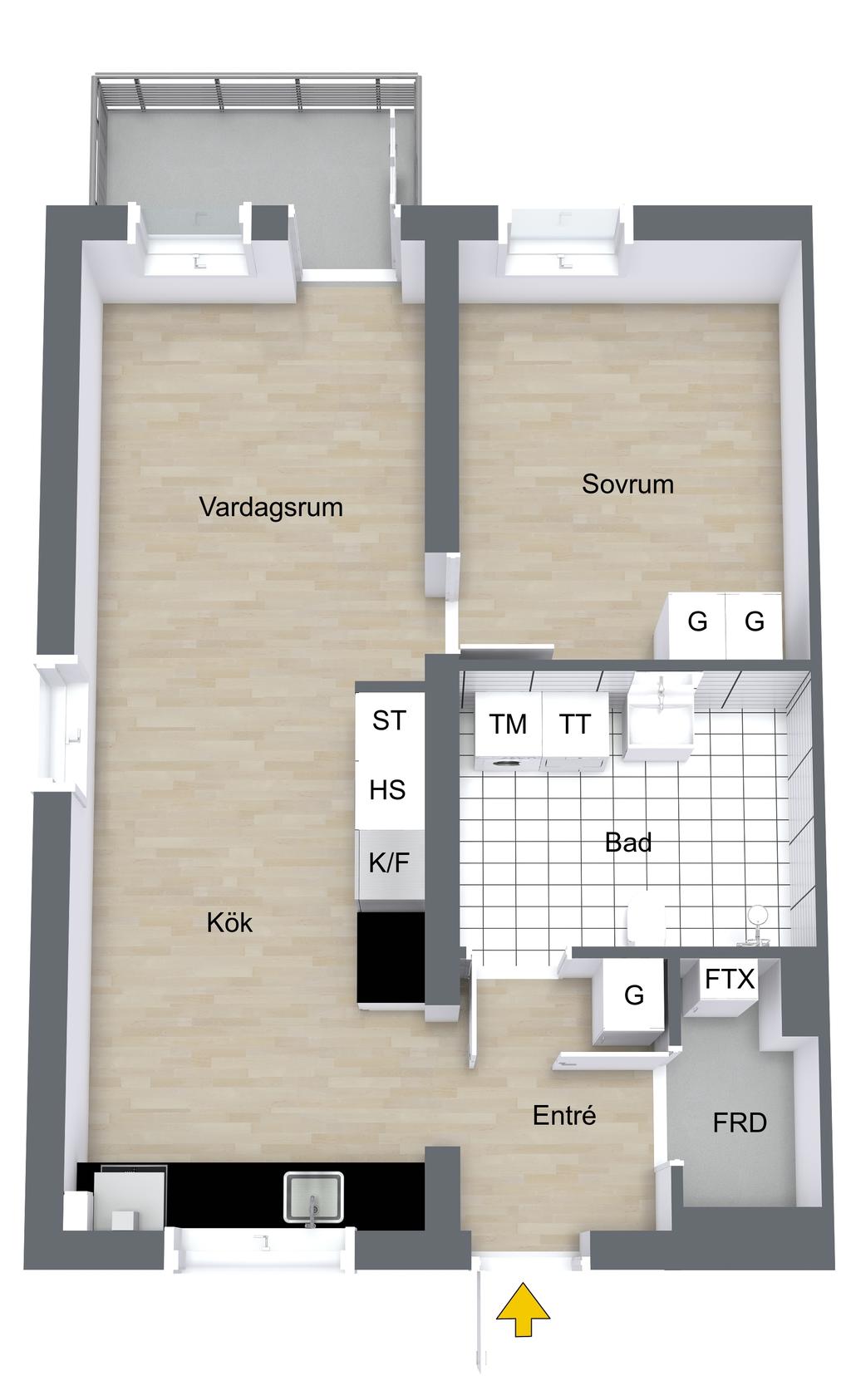 Ljus och modern tvåa med öppen planlösning och rymlig balkong