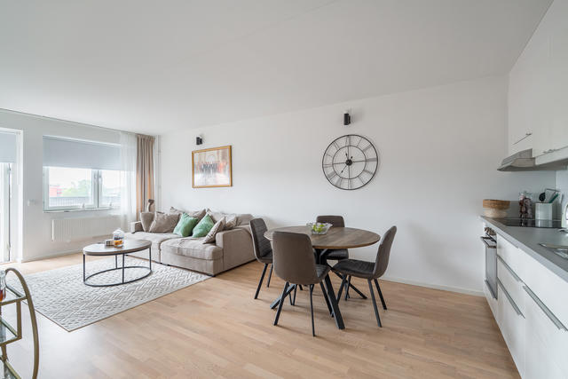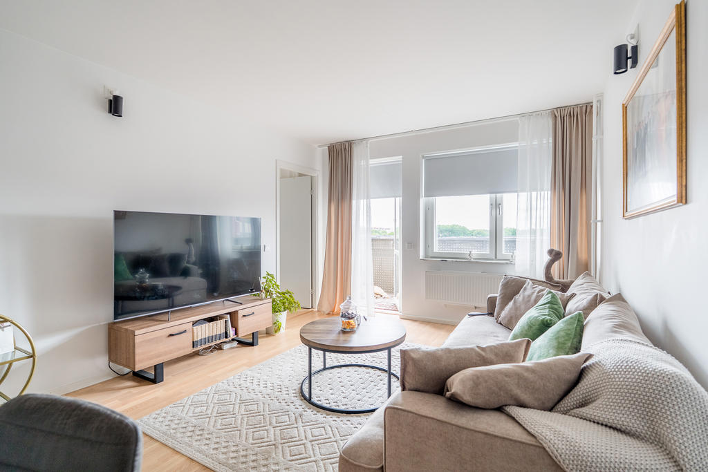 Stilren tvåa högt upp med fantastisk utsikt och stor balkong