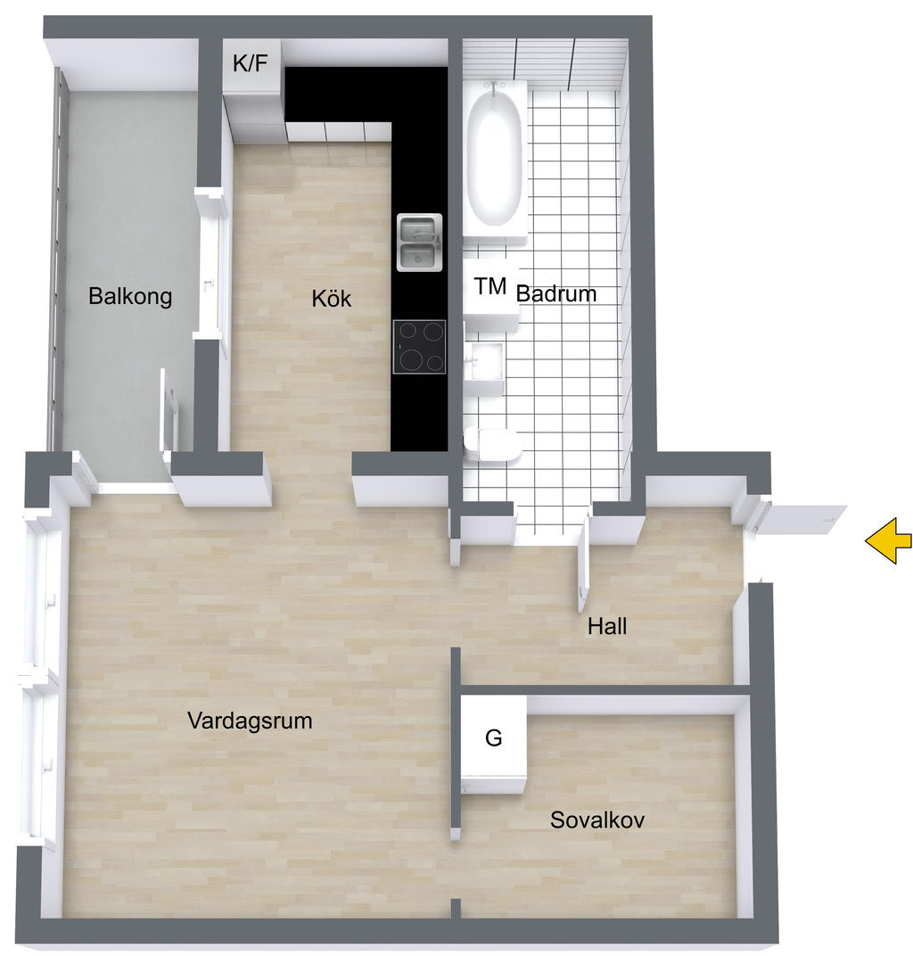 Välplanerad 1.5:a med stor balkong