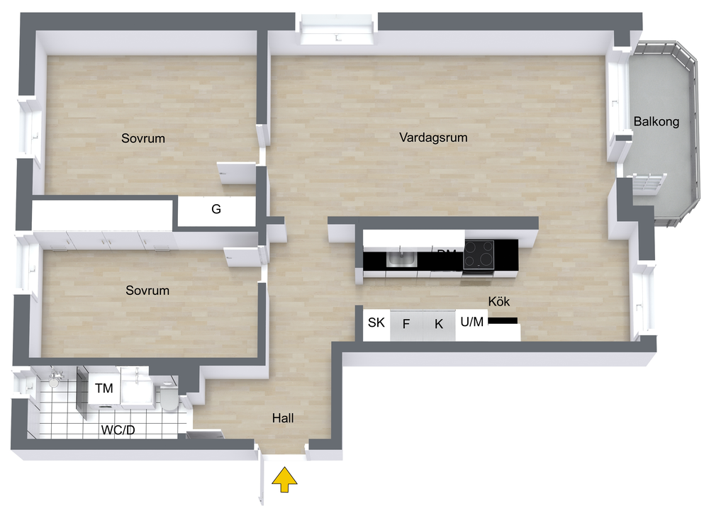 Ljus och stilren 3:a i attraktivt hörnläge med balkong mot grönska