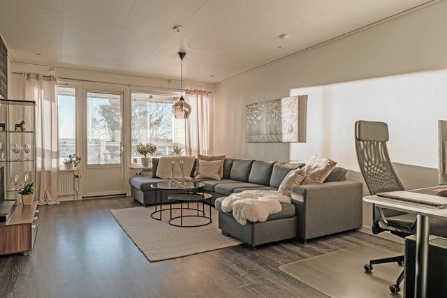 Rymlig lägenhet med flexibel planlösning och inglasad söderbalkong – en våning upp trots markplan!