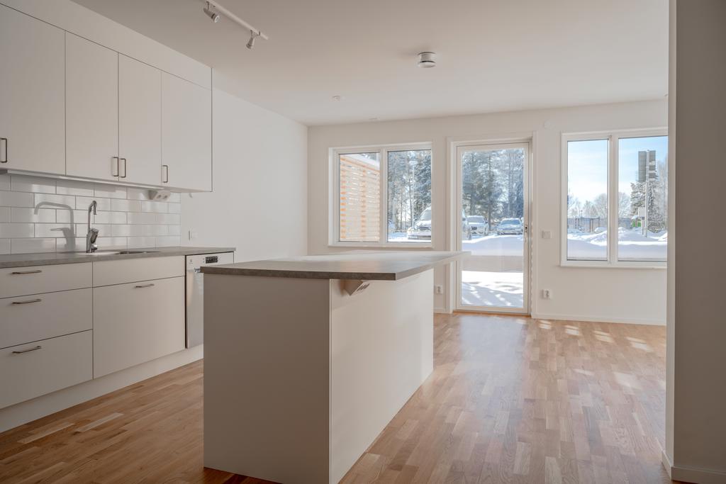 Ta chansen att förvärva ett nyproducerat och optimalt planerat radhus på populära Morön/Getberget. Under 2026 färdigställdes dessa radhus om 98,5kvm fördelat över två våningar med genomtänkt planlösning och som erbjuder ett härligt ljusinsläpp samt moderna och högkvalitativa material. Ytterdörren med praktiskt kodlås välkomnar oss in i hallen med ordentlig förvaring och ett helkaklat badrum. Därefter vidare till ett öppet och socialt kök med bra ytor och en maskinpark med kvalitativa materialval och vitvaror. Det stora fönsterpartiet ger ett otroligt ljusinsläpp i hela rummet. Intill köket finns det plats för både matbord och soffgrupp där man även når utgången till den härliga altanen i söderläge med vindskydd. Övervåningen i denna lägenhet ger idag plats för 3 sovrum, ett badrum samt en öppen del för kontor/tv-rum som även detta skulle kunna nyttjas som ett fjärde sovrum vid behov. Utöver detta finns förvaringsmöjligheter i ett förråd under trappen på entrévåningen samt i ett kallförråd om 4m2 i anslutning till bostadens tillhörande carport.