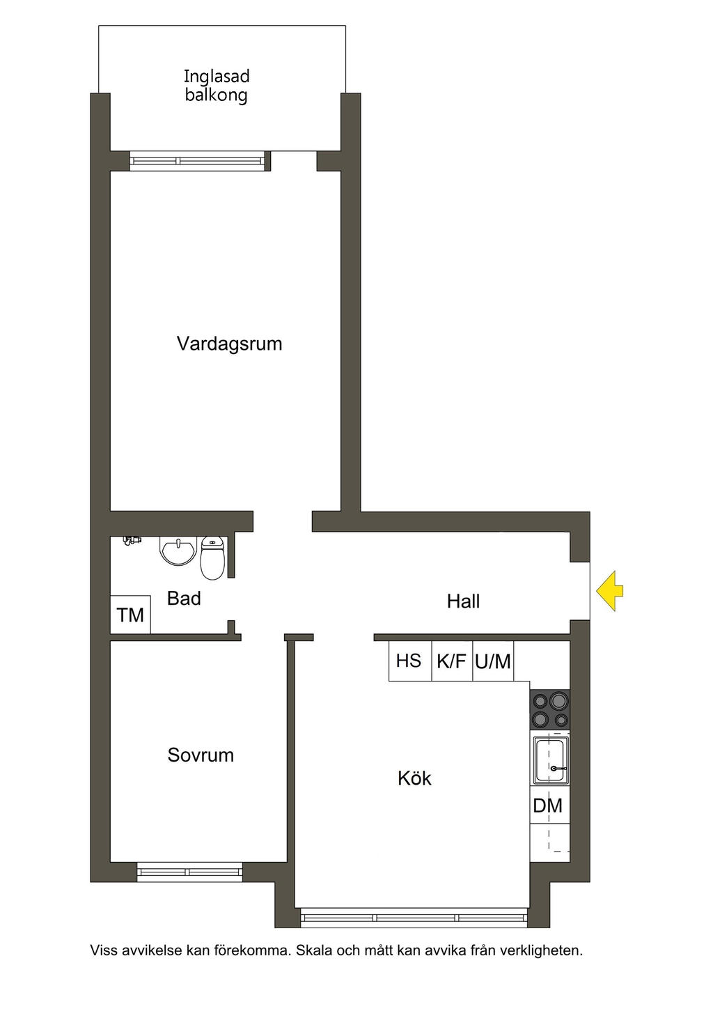 Mycket trivsam 2:a med stor inglasad västerbalkong!