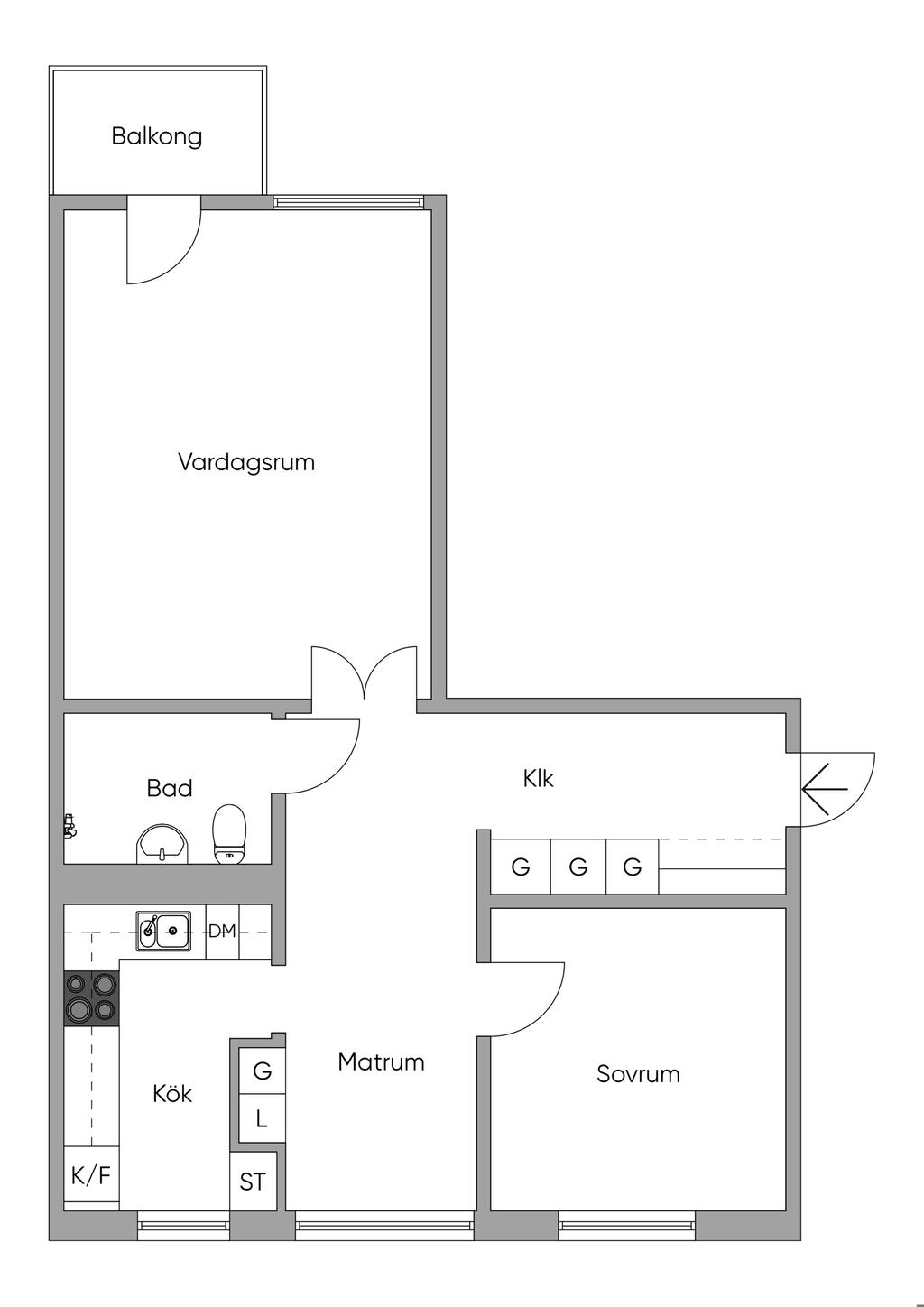 Ljus och trivsam 2:a på 59,5 kvm endast en halvtrappa upp!
