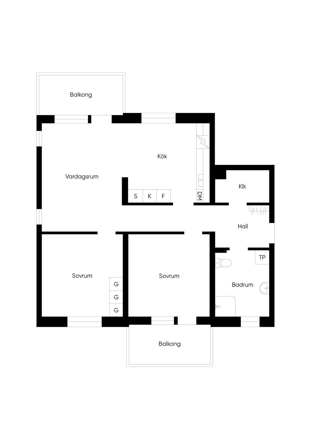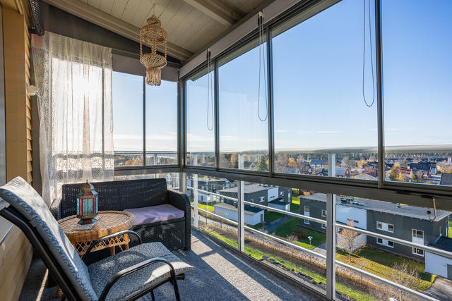 Lägenhet med två inglasade balkonger på 7:e våningen