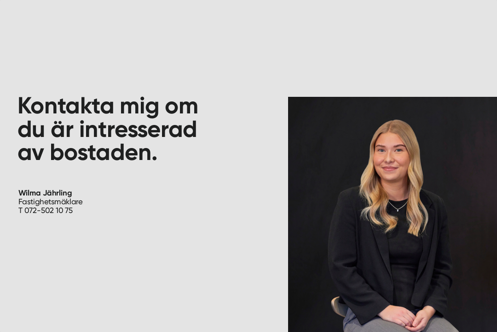 Med hjälp av vår boendekostnadskalkyl får du snabbt en uppfattning om vad den här bostaden skulle kosta dig per månad. Du kan enkelt justera siffrorna utifrån dina personliga förutsättningar. Kontakta mäklaren om du vill ha hjälp med beräkningen.