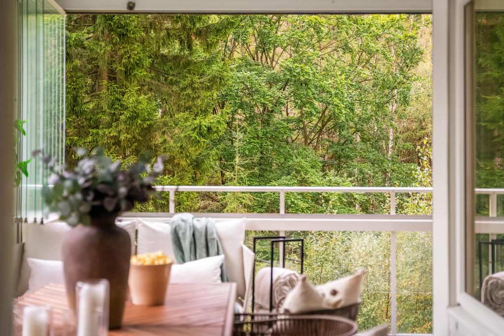 Stilren och insynsskyddad 3:a med naturen precis utanför och helt inglasad balkong.