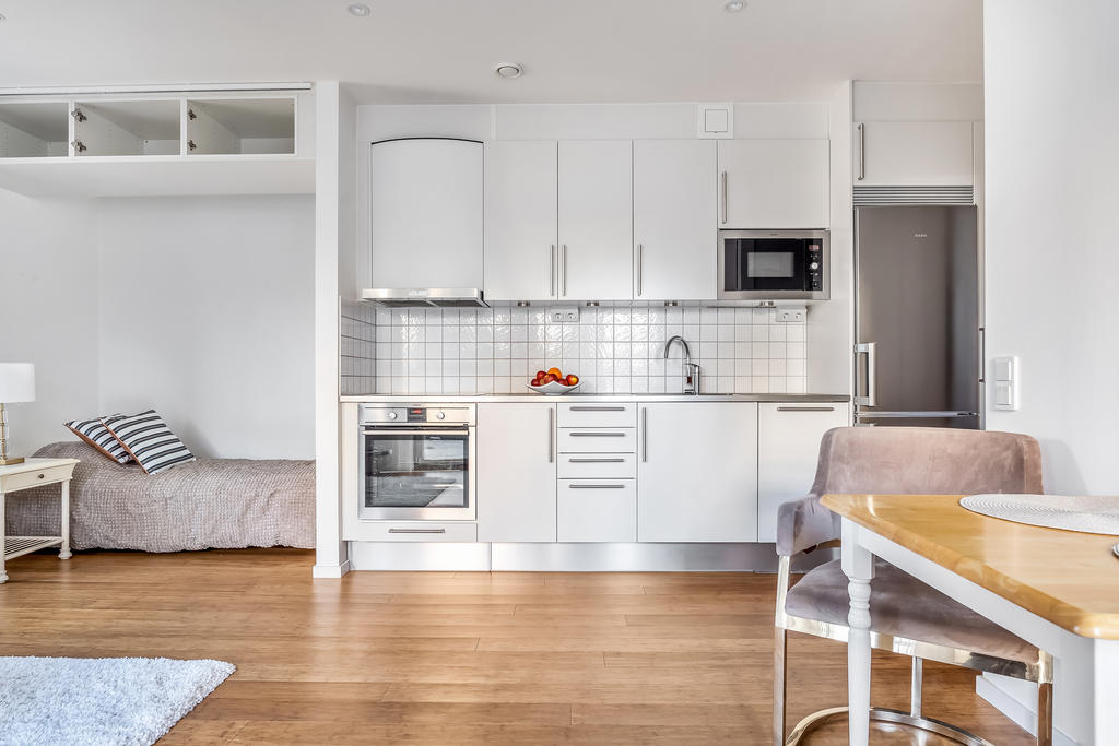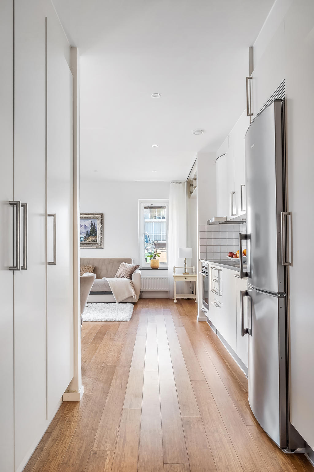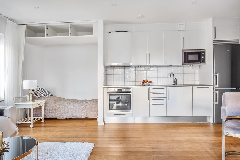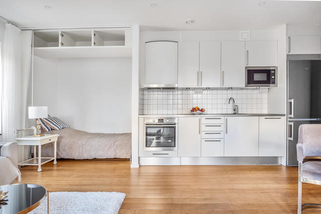 Stilren etta med låg avgift och exklusiva materialval i vackra och trivsamma Green Village.