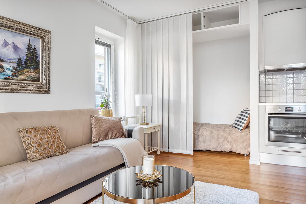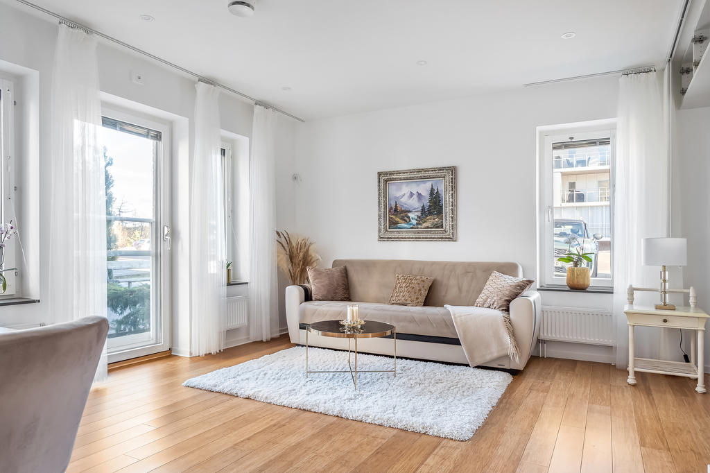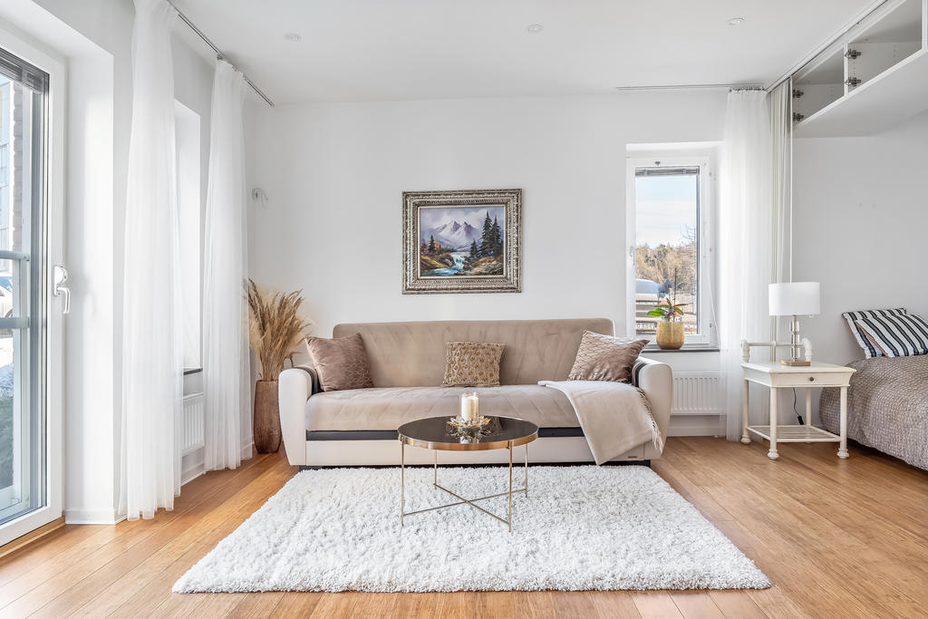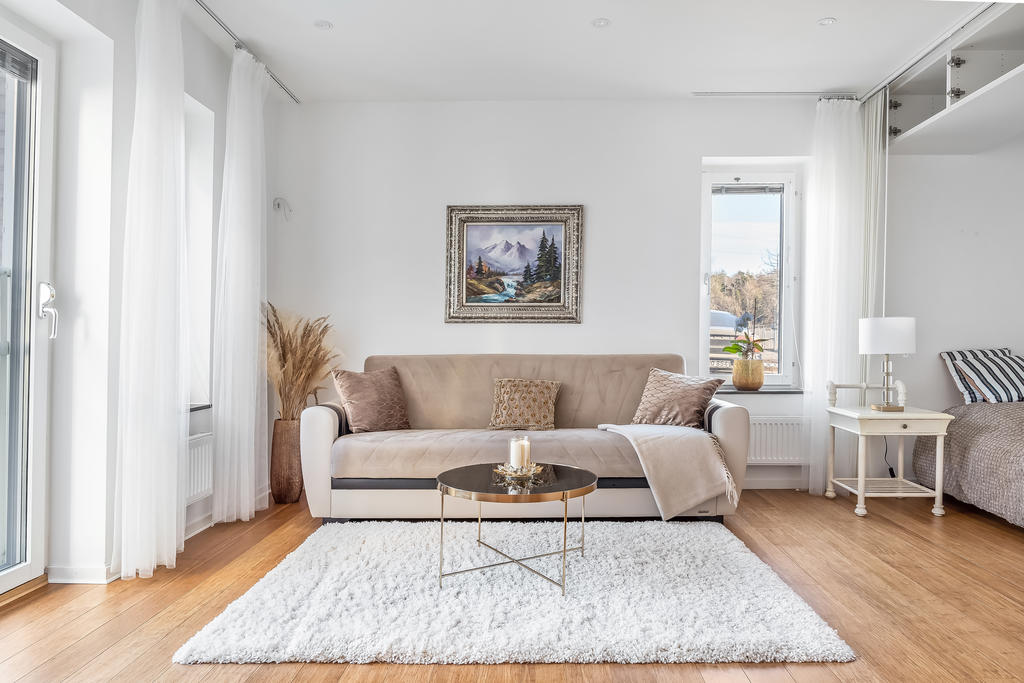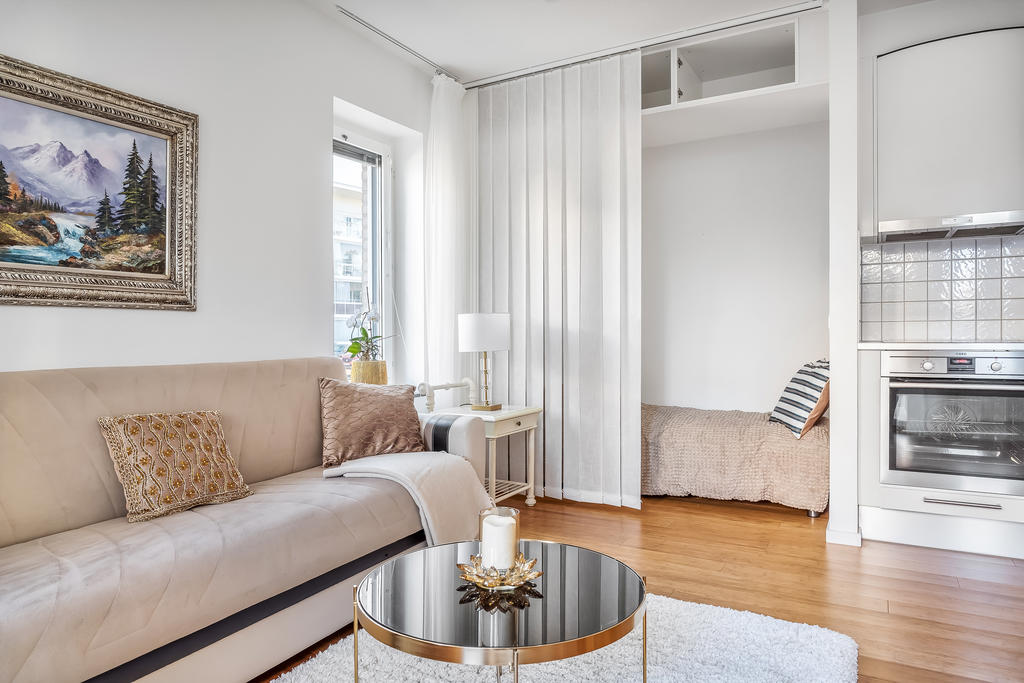 Stilren etta med låg avgift och exklusiva materialval i vackra och trivsamma Green Village.