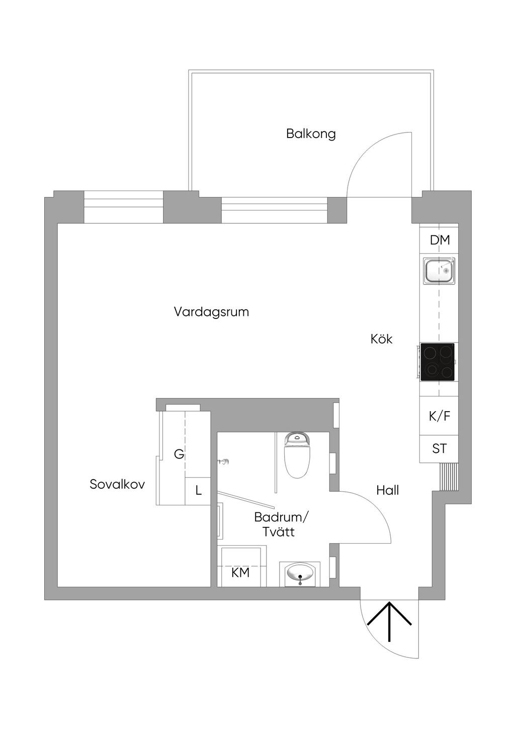 Stilren 1:a med smart sovalkov och stor härlig balkong!