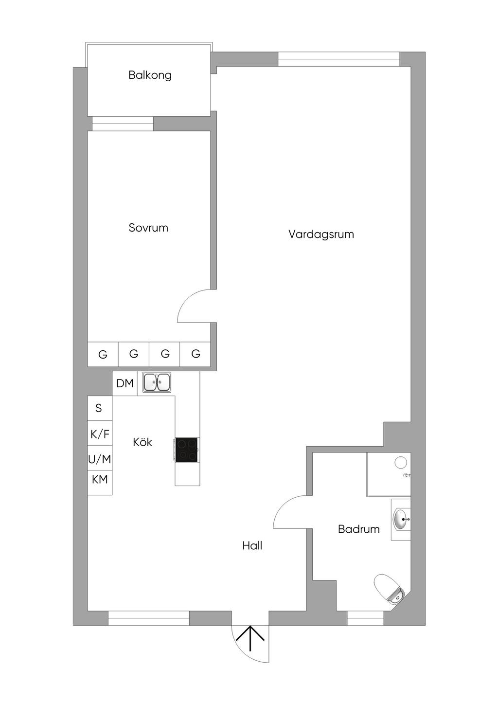 Sovrummet är harmoniskt placerat och erbjuder gott om plats för dubbelsäng samt förvaring. Ett lugnt och avskilt rum som bjuder in till vila. För den som önskar ett andra sovrum finns det möjlighet till detta, se alternativa planskisser.