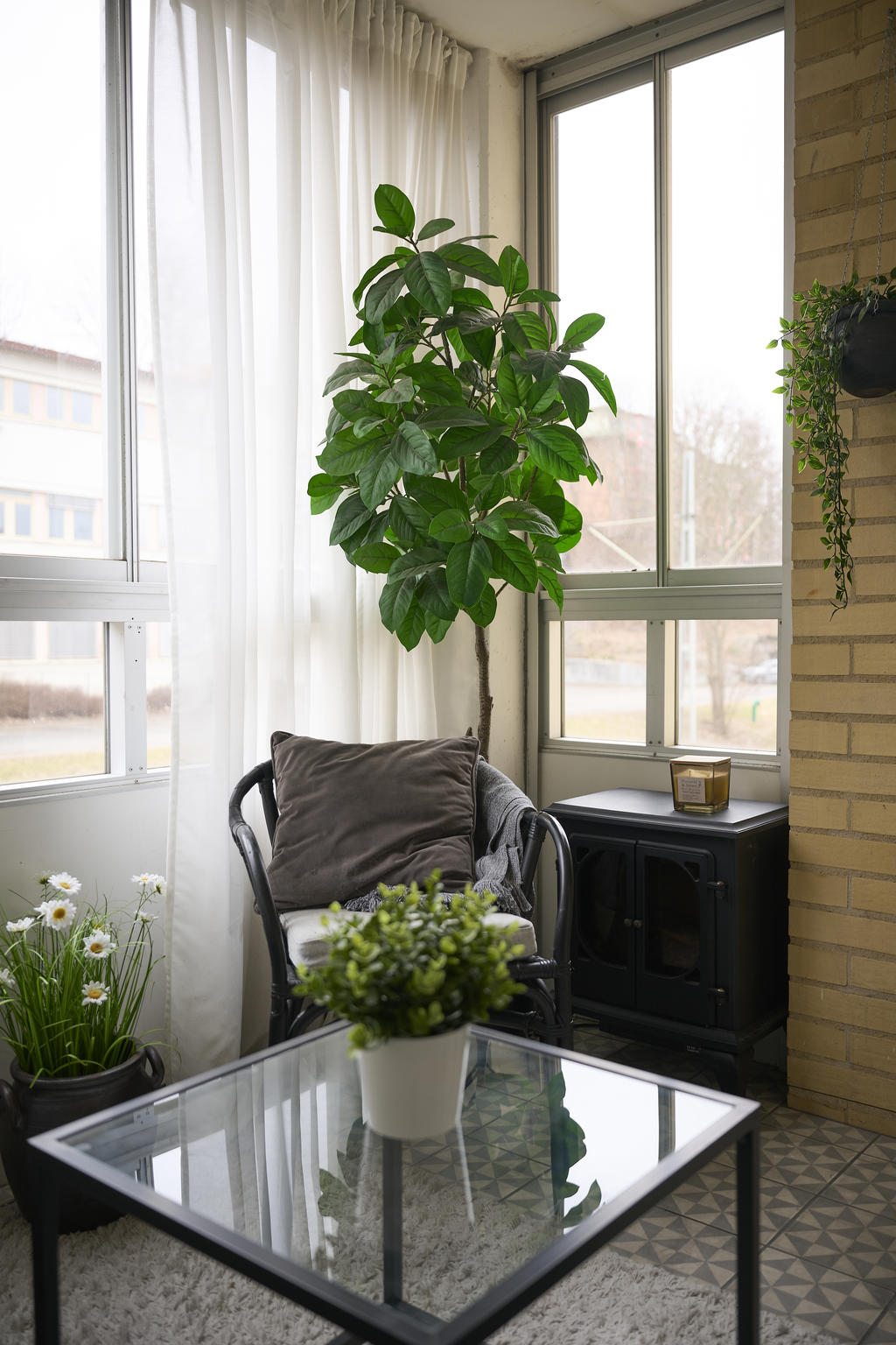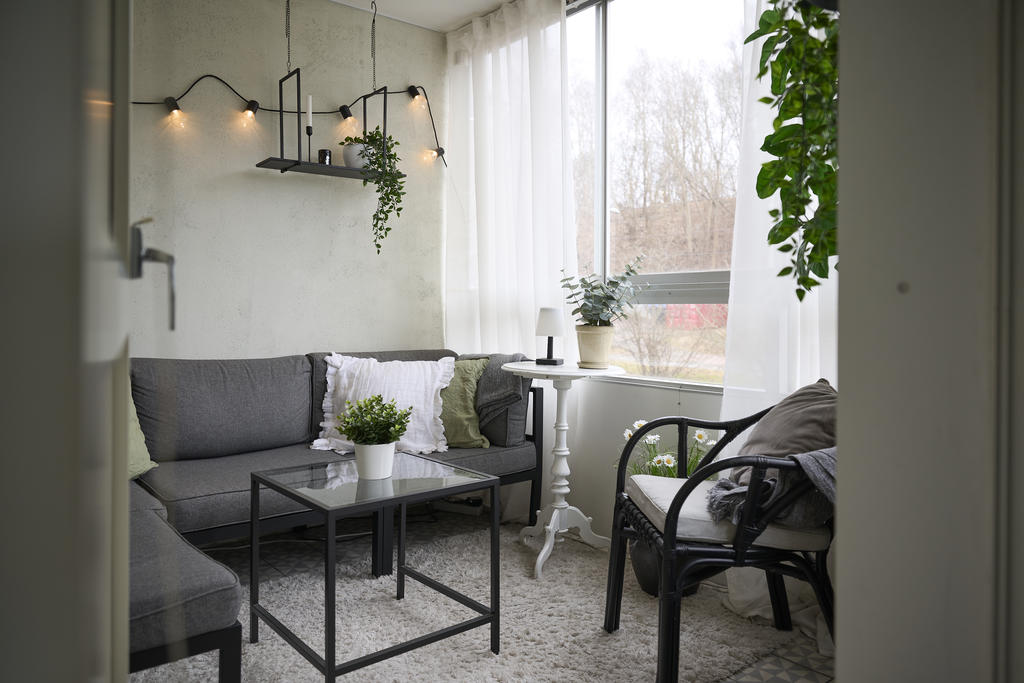 Det rymliga vardagsrummet erbjuder gott om plats för både soffgrupp och en stor matplats. Fönsterpartier släpper in rikligt med ljus och förstärker bostadens öppna känsla. Härifrån når du den inglasade balkongen i härligt sydöstläge – en förlängning av vardagsrummet där du kan njuta av morgonsol och långa, ljusa dagar från tidig vår till sen höst.