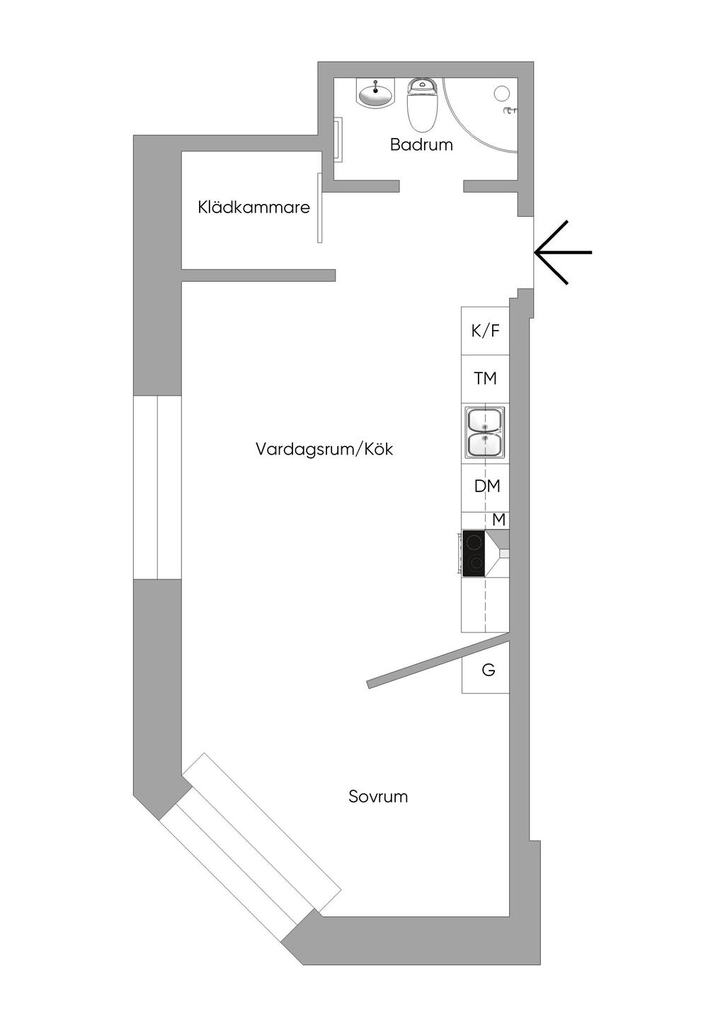Köket är elegant och funktionellt med sina moderna rostfria vitvaror, stilrena gråa köksluckor och en arbetsbänk i vitt marmorlaminat som både är praktisk och estetiskt tilltalande. De inbyggda hyllorna och förvaringslösningarna gör att varje kvadratmeter utnyttjas optimalt, och med förvaring upp till takhöjd får du mer utrymme än vad som är vanligt i likvärdiga bostäder. Det vita kaklet ovanför bänkskivan ger en klassisk och fräsch touch. Extra bekvämt är den inbyggda tvättmaskinen bakom ett av köksskåpen – en lyxig detalj som underlättar vardagen.