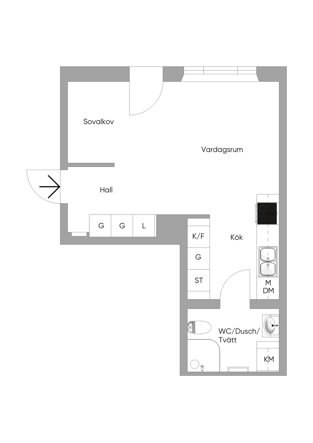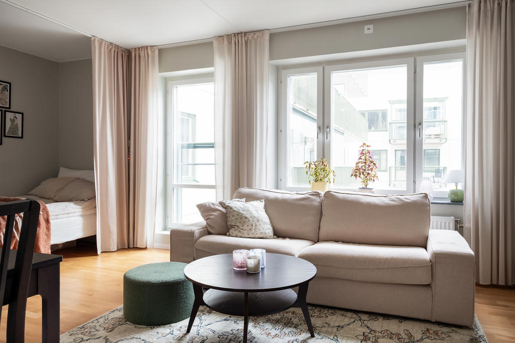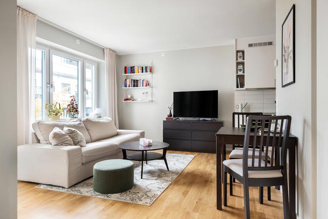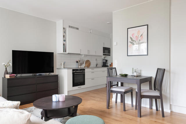 Modern och ljus 1:a med sovalkov och stilrena detaljer