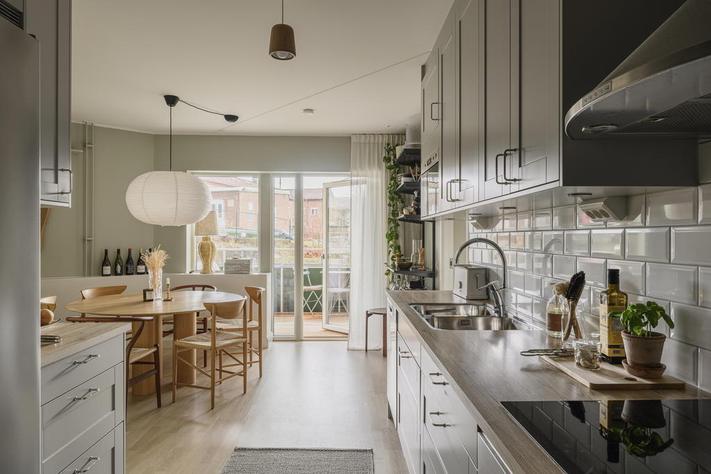 Planlösningen är både praktisk och charmig. Det sociala hjärtat utgörs av det öppna sambandet mellan kök och vardagsrum, där stora fönsterpartier låter dagsljuset flöda in och skapar en inbjudande samlingsplats. Köket är noggrant utvalt och håller hög standard, perfekt för dig som uppskattar både funktion och estetik. I anslutning finns den härliga balkongen – en naturlig förlängning av vardagsrummet och en självklar plats för avkoppling.