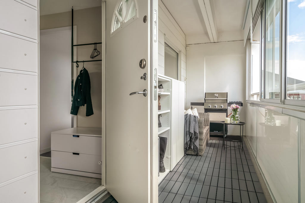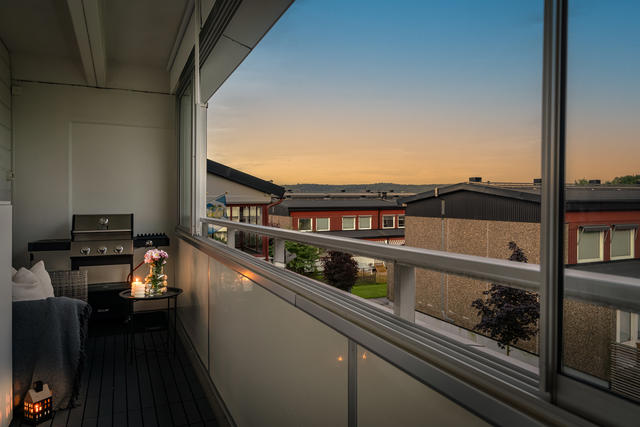 Välplanerad trerumslägenhet med inglasad balkong i söderläge – högst upp i huset!