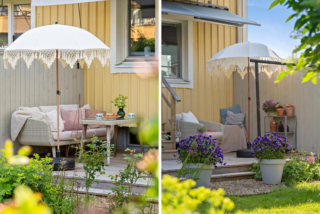 Renoverad, ljus och charmig gavellägenhet med radhuskänsla, uteplats i solen och grön omgivning!