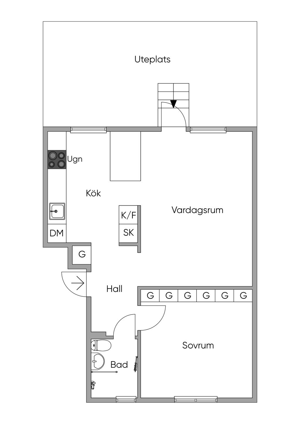 Renoverad, ljus och charmig tvåa med radhuskänsla, egen uteplats i solen och gröna omgivningar!
