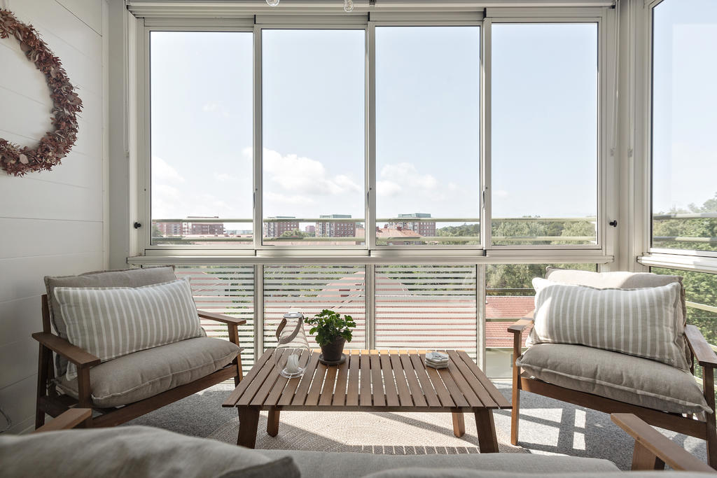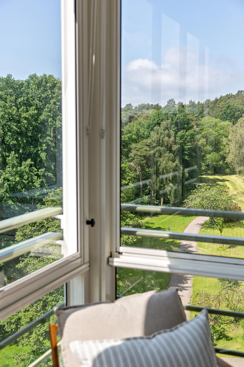 Stilren och välplanerad 2:a högt i huset med härlig utsikt och inglasad balkong i soldränkt läge!
