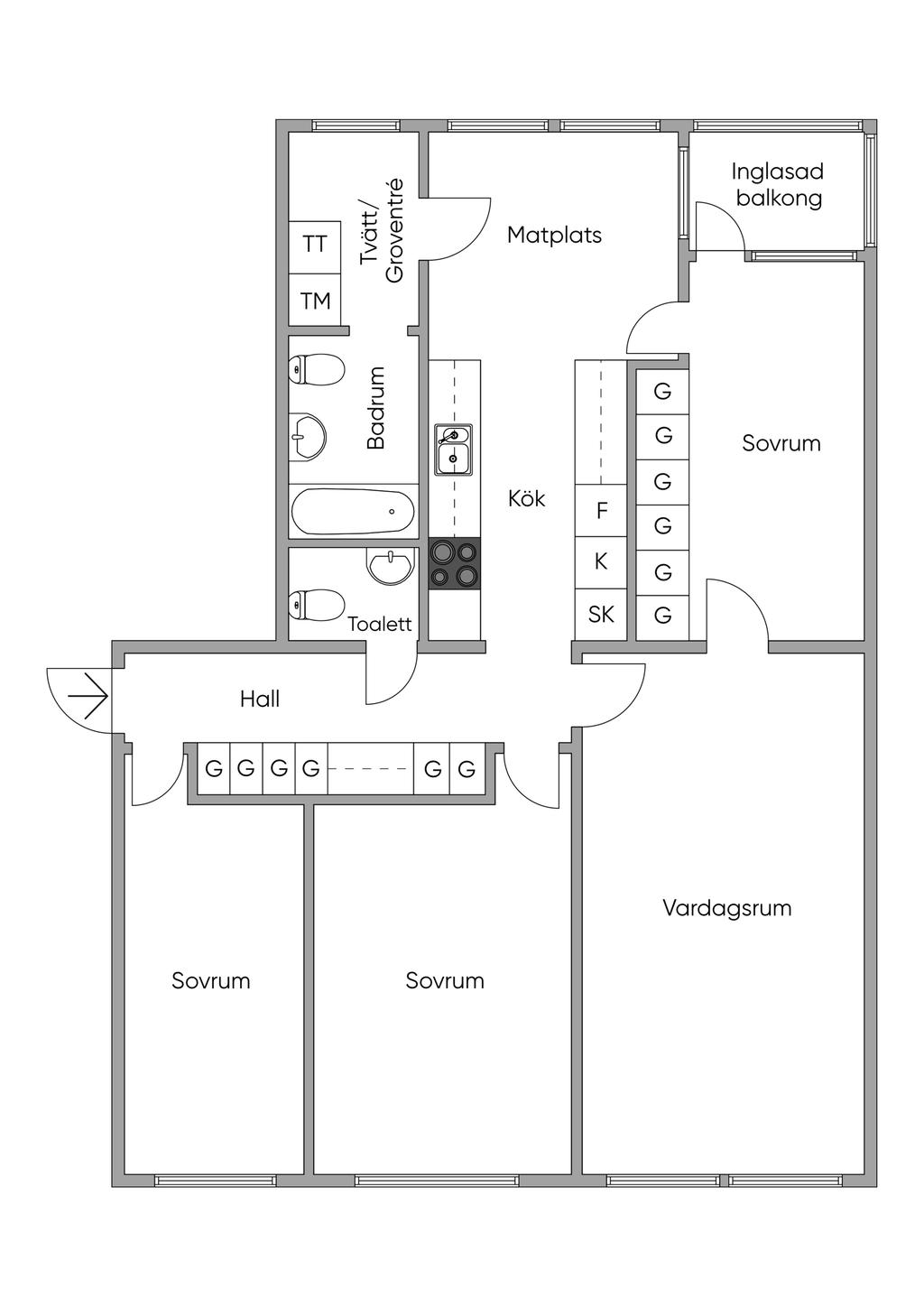 Ljus och välplanerad genomgångslägenhet om 92 kvm med balkong och fin utsikt!