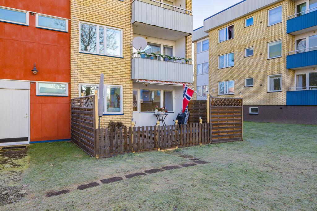 Trivsam och behändig tvårummare med låg avgift i markplan