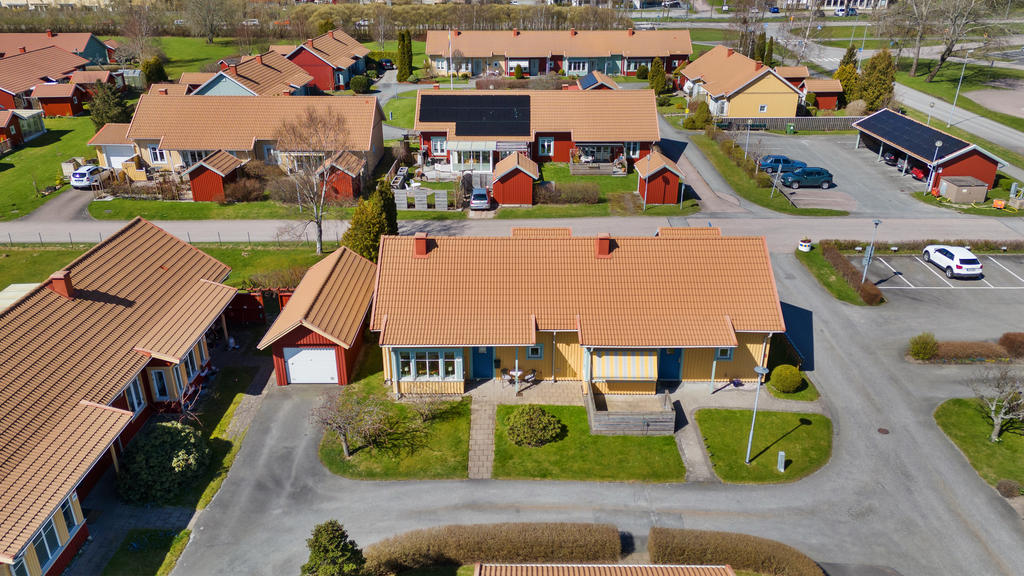 Härligt bostadsrättsparhus i populärt 50+ område, två uteplatser och parkeringsplats