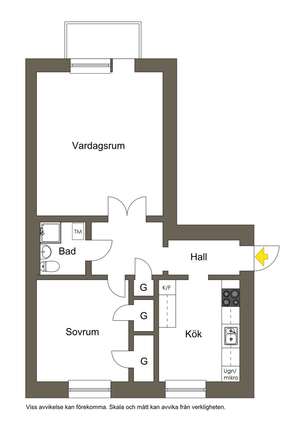 Välplanerad tvårummare med söderbalkong nära centrum
