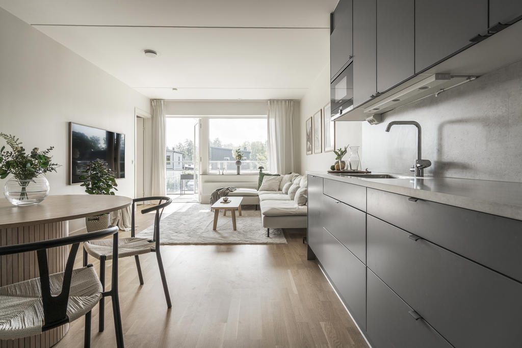 Nybyggd tvåa i grönskande omgivningar