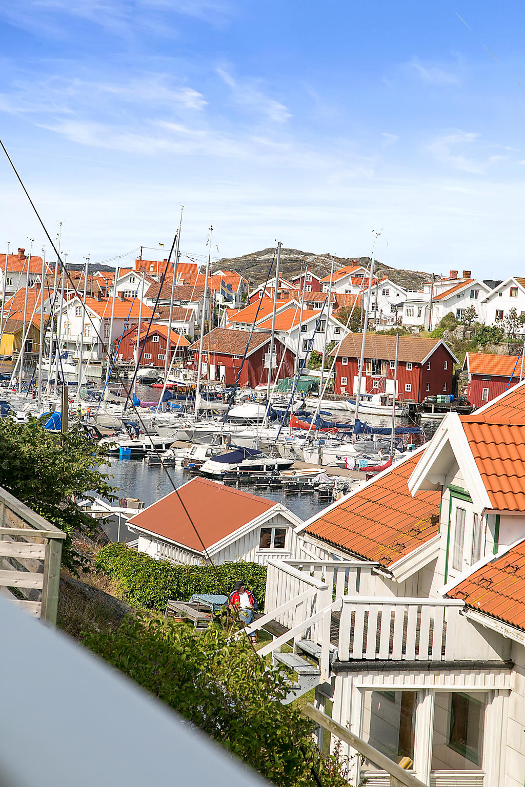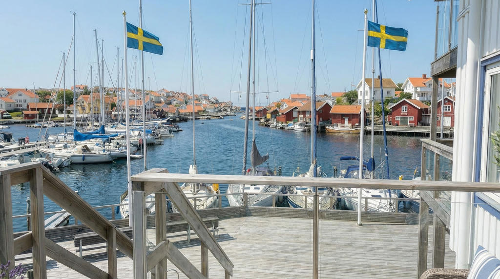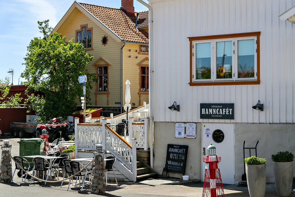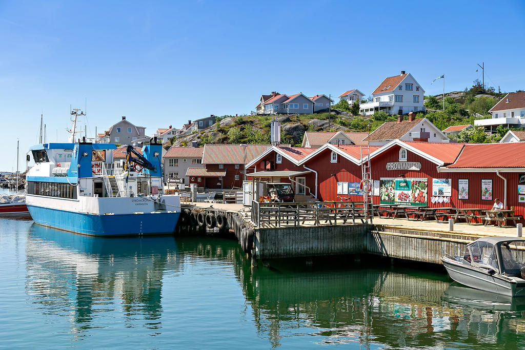 Utsikten in mot hamnen och inloppet är ständigt levande. Sommartid sjuder det av liv – segelbåtar, barnskratt, glass i handen och förväntan i luften. Sensommarens lugn är något helt annat. Höstens klara dagar likaså. Gullholmen är Sveriges mest tätbebyggda plats – samtidigt en av de mest levande och genuina. Och när du vill byta myller mot stillhet tar du steget över till Härmanö naturreservat. Karga klippor, vindpinade stigar, öppet hav och vandringar som landar i salta bad eller en långlunch på Grindebackens Strandhak. Två världar – på promenadavstånd.