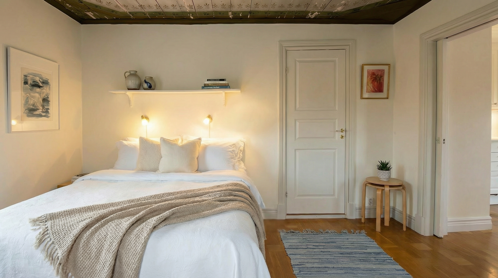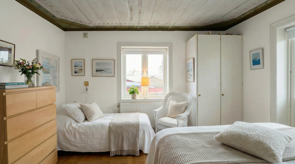 Huset totalrenoverades 2008 med stor varsamhet. Här möts modern komfort och energieffektivitet – bergvärme, god isolering och låga driftkostnader – med bevarad själ. Det målade innertaket i sovrummet vittnar stillsamt om husets historia och ger bostaden en varm, ombonad karaktär som inte går att köpa för pengar.