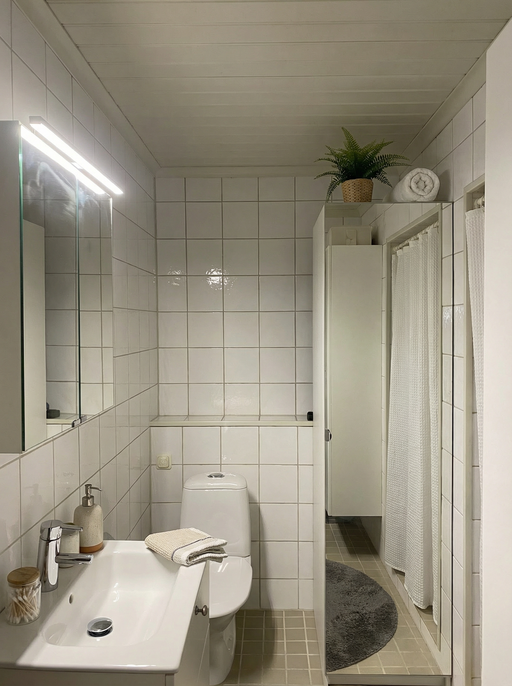 Via gemensam entréhall - med tvättstuga intill - kliver ni in i ett hem där varje kvadratmeter är genomtänkt. Kök, matplats och vardagsrum flyter samman i en öppen planlösning som bjuder in till långa frukostar i morgonljuset och sena middagar efter ett dopp i havet. Sovrummet är generöst och rofyllt – en plats som rymmer fler sängar - och en plats där man somnar till ljudet av sommarnatten och vaknar utvilad när måsarna gör sig påminda. Badrummet är praktiskt och stilrent, precis som man vill ha det i ett lättskött skärgårdsboende.