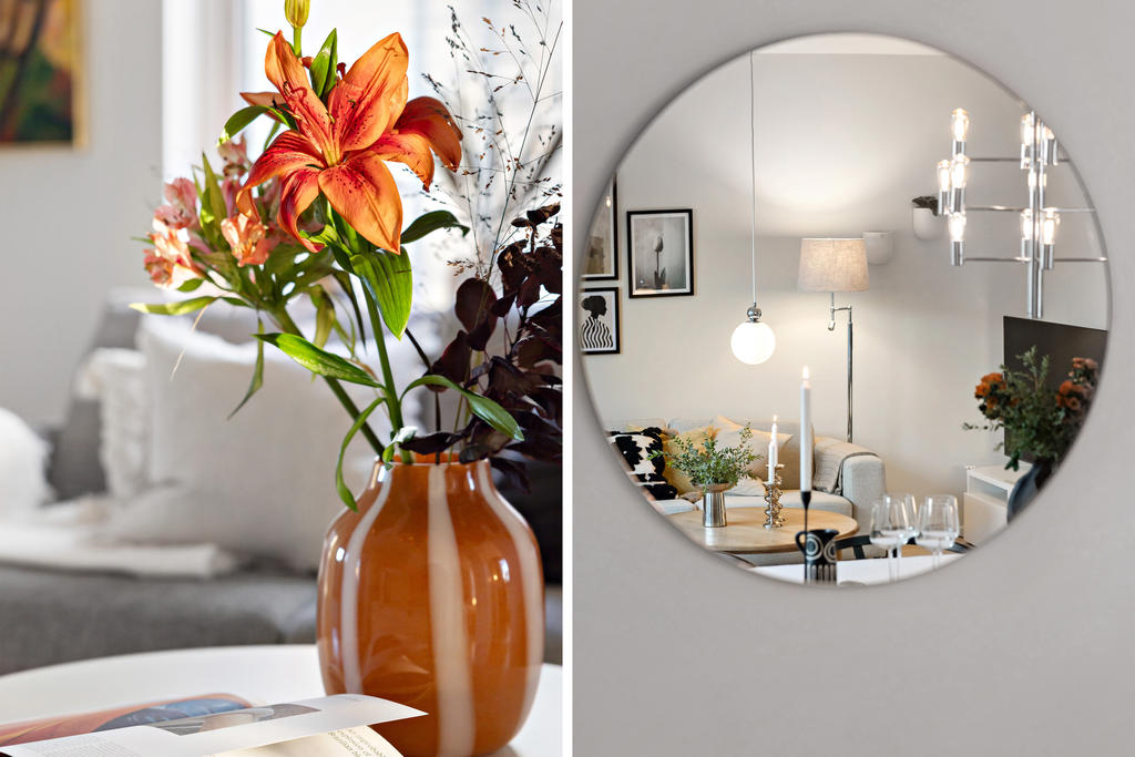 Vackra ekgolv löper genom hela bostaden och modern färgsättning ger ett stilrent och ombonat intryck.