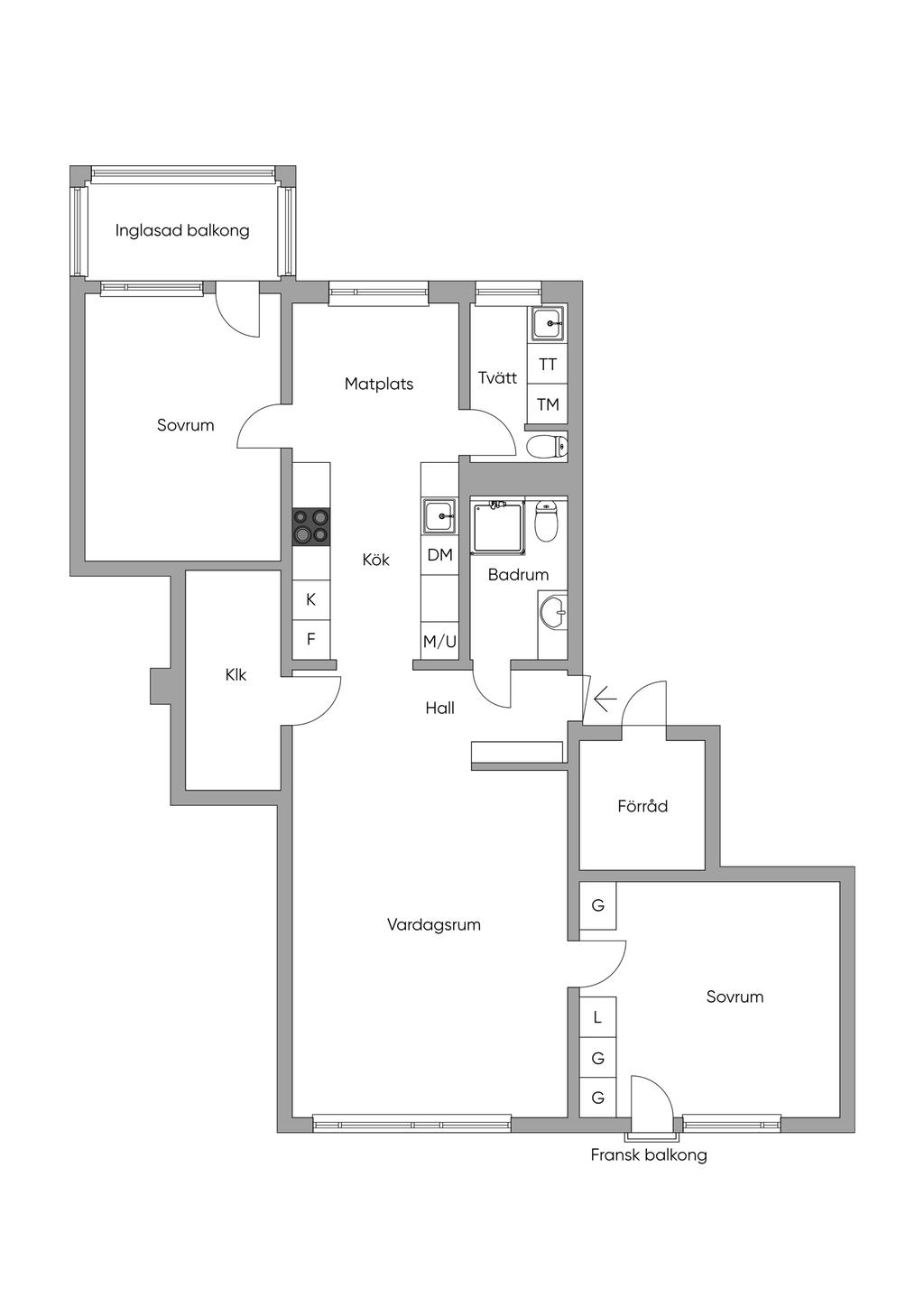 Totalrenoverad 3:a med solig inglasad balkong